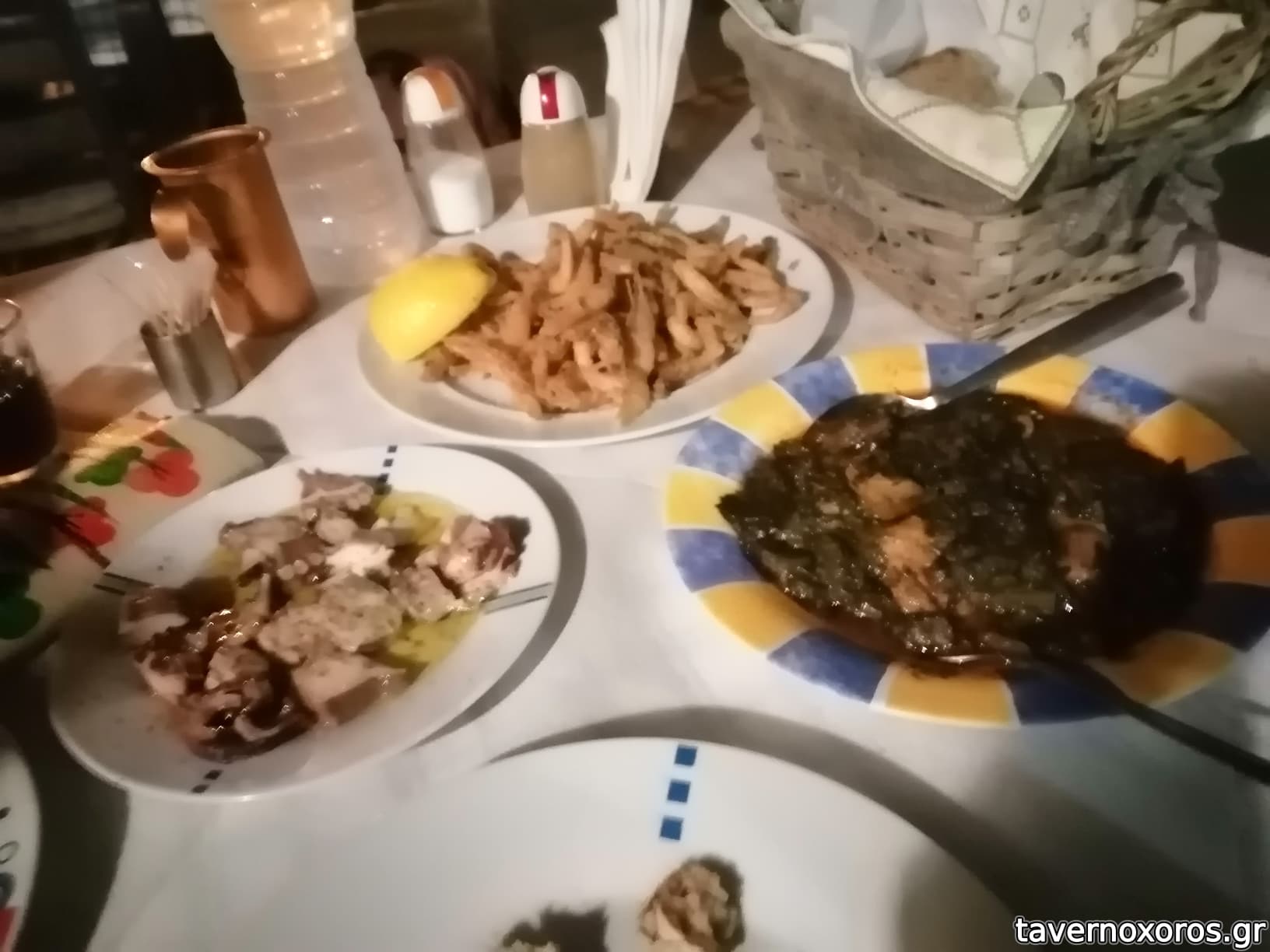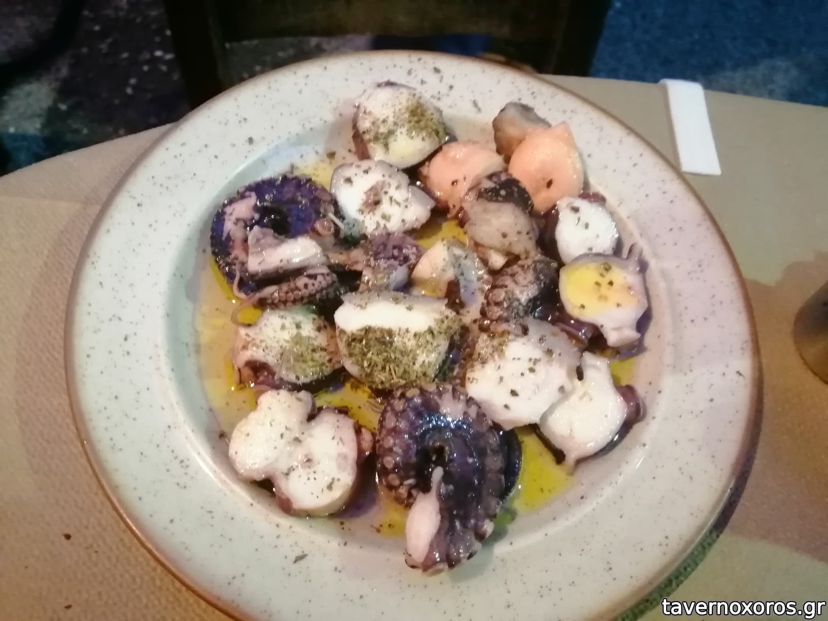 Τηγανητό γαριδάκι (καλό), τσιγαρέλι με σουπιά (πολύ καλό) και χταποδάκι ξυδάτο (μέτριο)