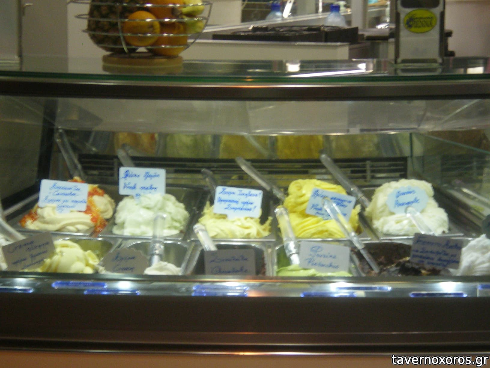Πολλές γεύσεις σε παγωτό που τις απολαμβάνεις σκέτες ή γαρνίρονται σε βάφλα. Σερβίρει και καθιστούς πελάτες και στο χέρι. Και βέβαια δε θα μπορούσε να λείπει και το παγωτό μαστίχα.