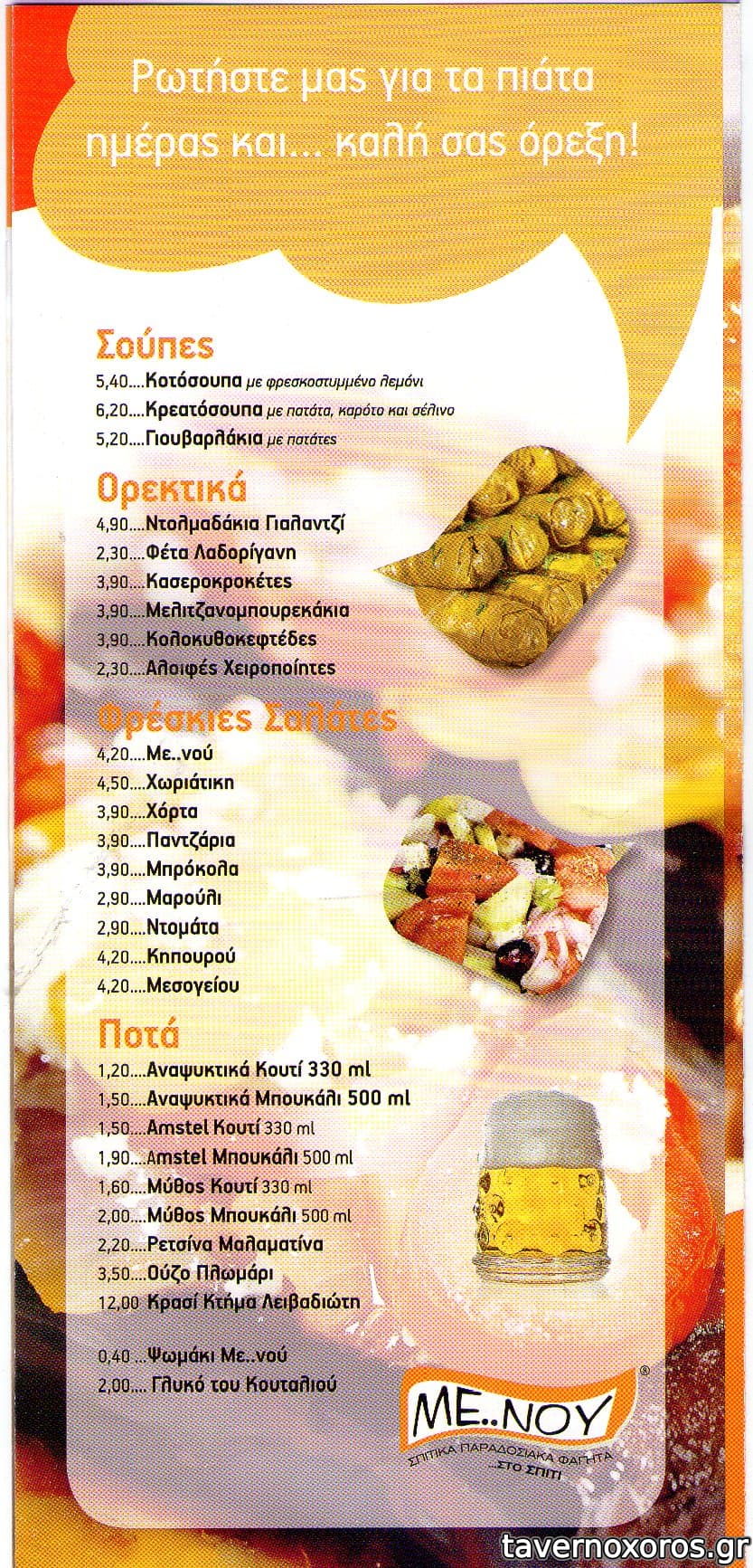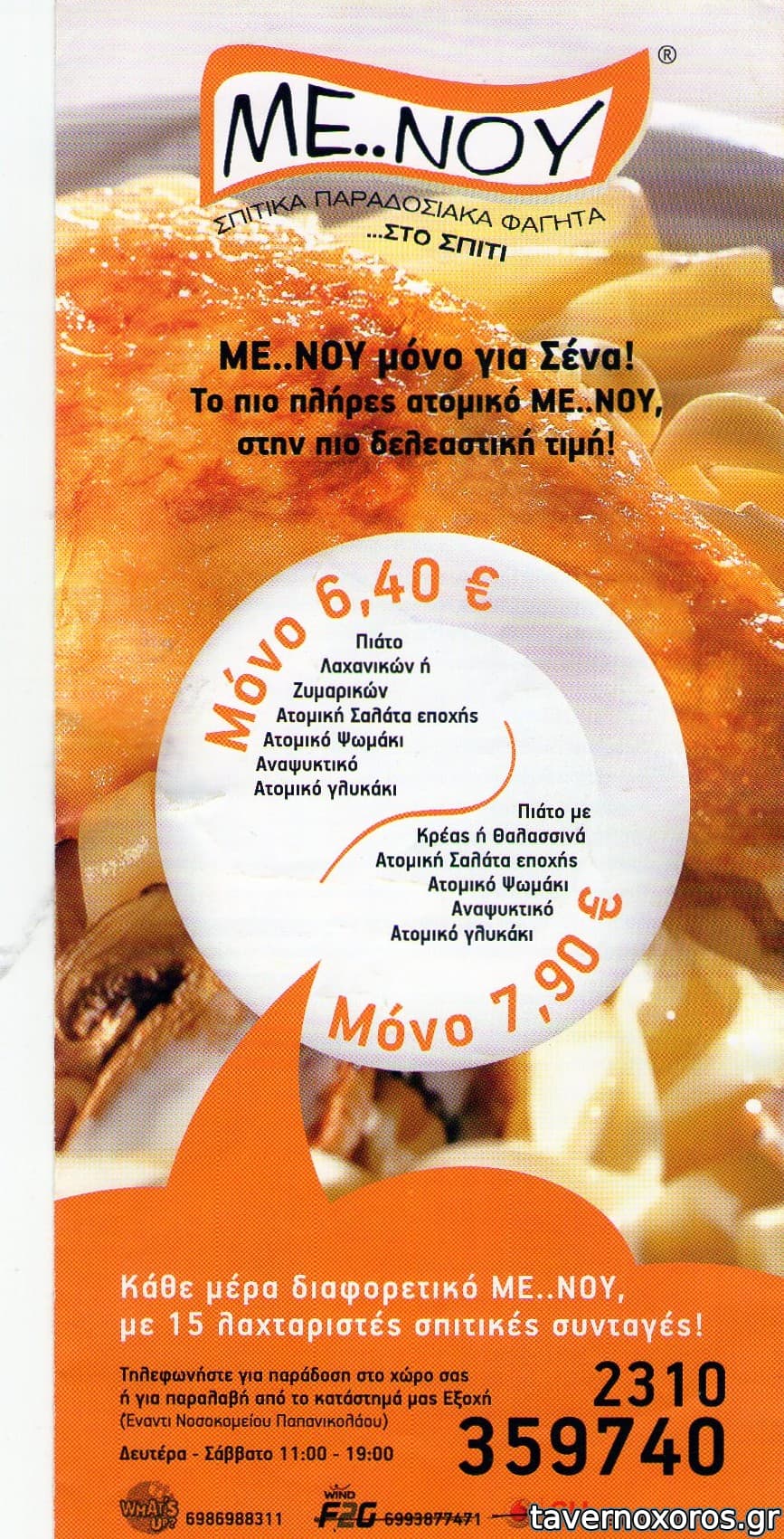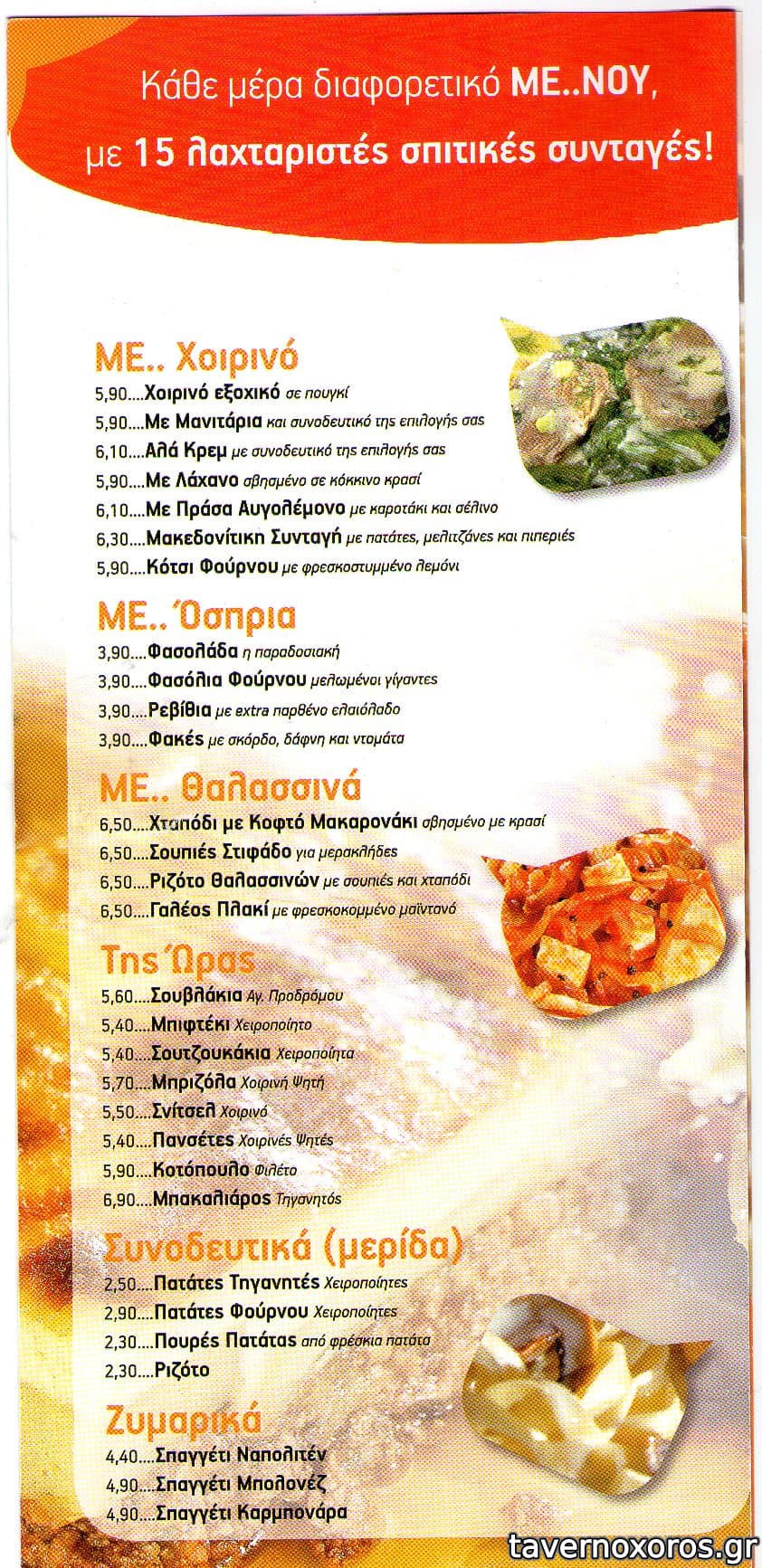 | Λέξεις κλειδιά | Μενού, Με νου, Menou, #βραστό, #κοτόσουπα, #ντολμαδάκια, #κολοκυθοκεφτέδες, #γεμιστά, #κοκκινιστό, #αγκινάρες, #σπεντζοφάι, #σουτζουκάκια σμυρνέικα, #παστίτσιο, #μουσακάς, #παπουτσάκια, #λαχανοντολμάδες, #κανελόνια, #φρικασέ, #κοτόπουλο, #χοιρινό πρασοσέλινο, #ρεβύθια, #χταπόδι, #σουπιά κρασάτη, #σουβλάκια, #σουτζουκάκια, #μπιφτέκι, #σνίτσελ, #χοιρινή, #μακαρονάδες |