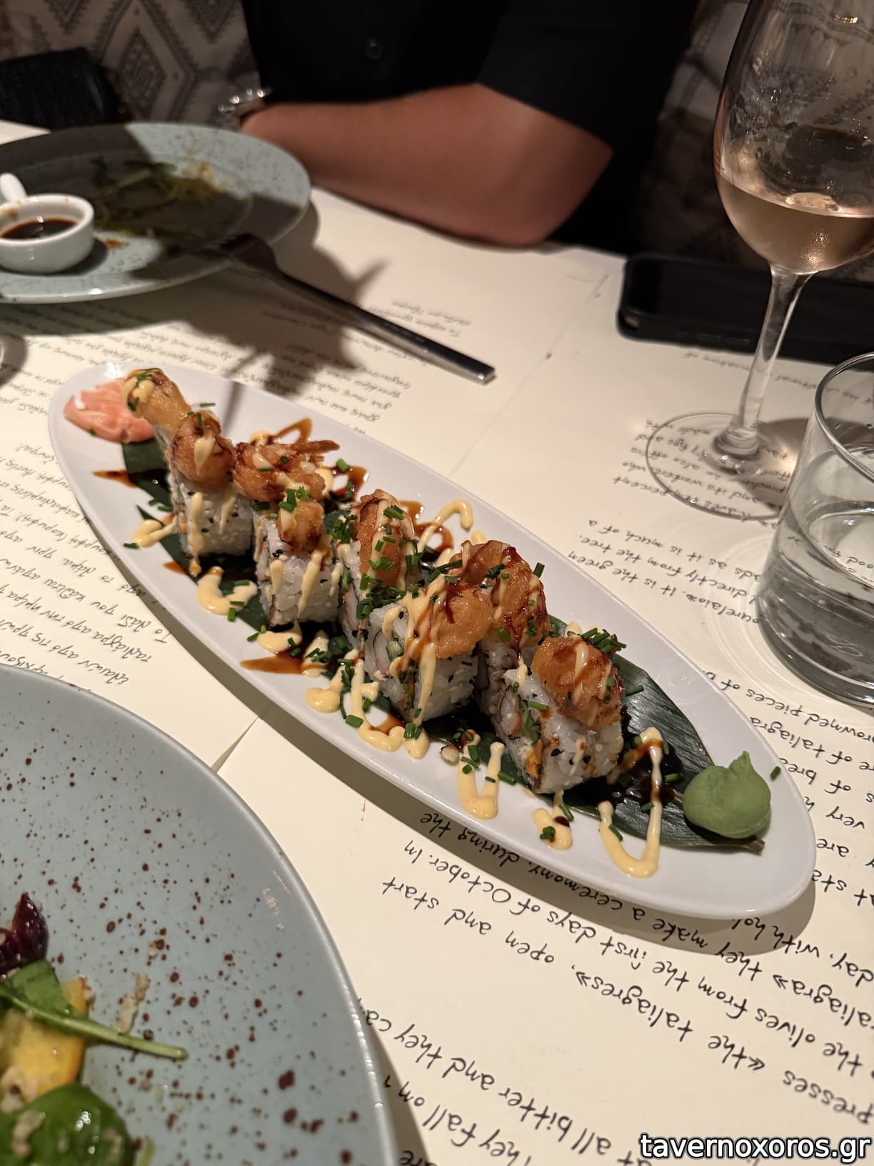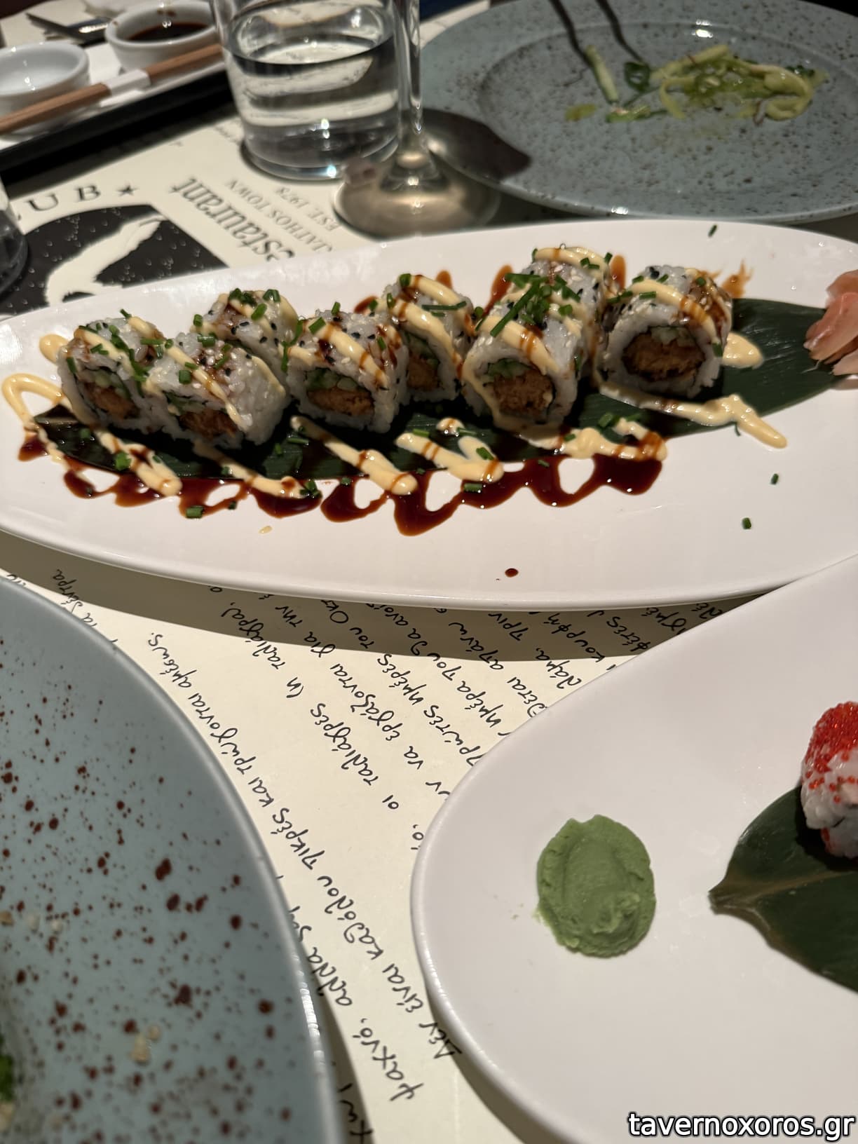 Φαγητό Sushi (καλό !), κρέατα (πολύ καλά), ψάρια (μια χαρά), λίστα κρασιών πολύ καλή.
