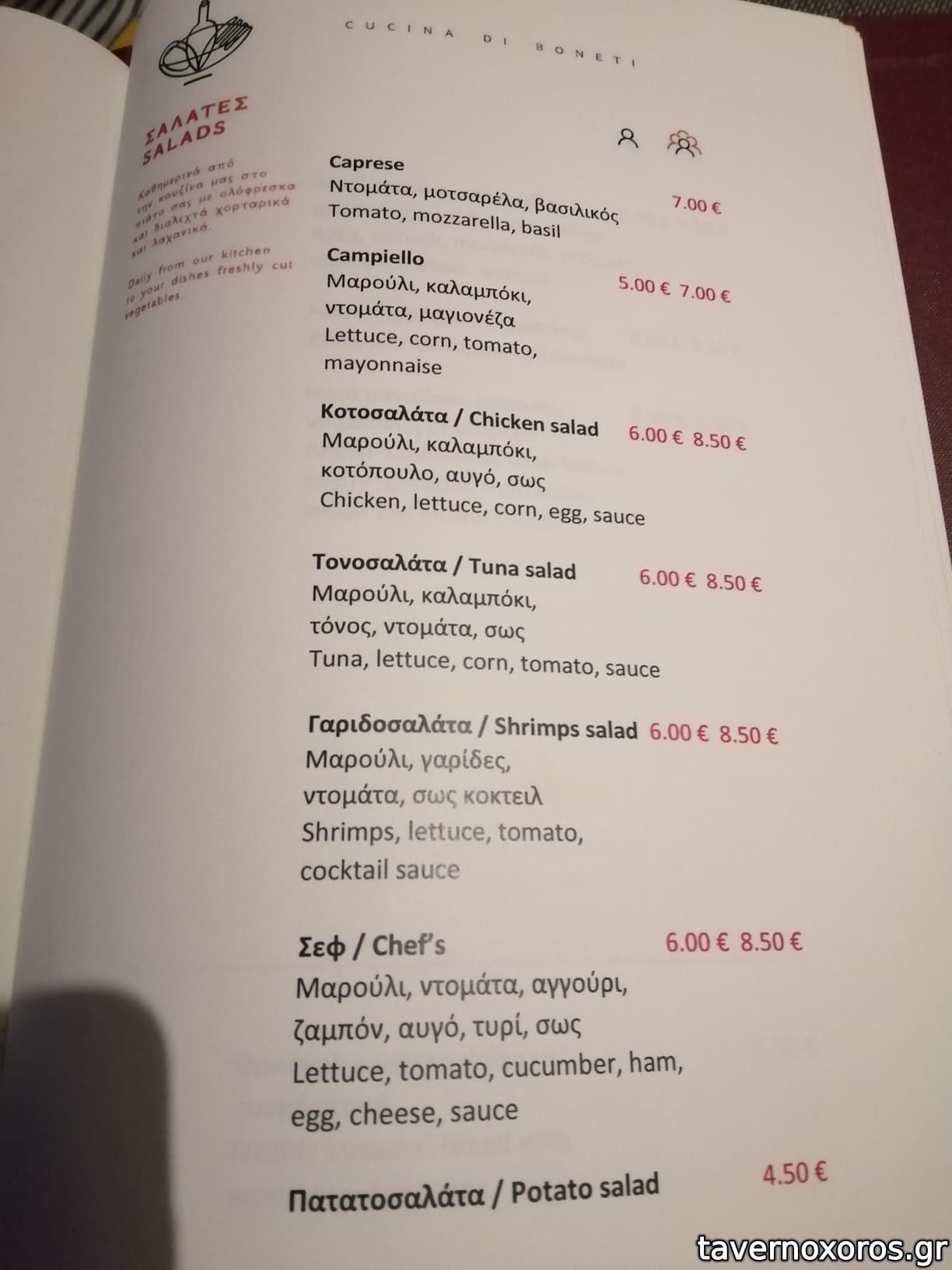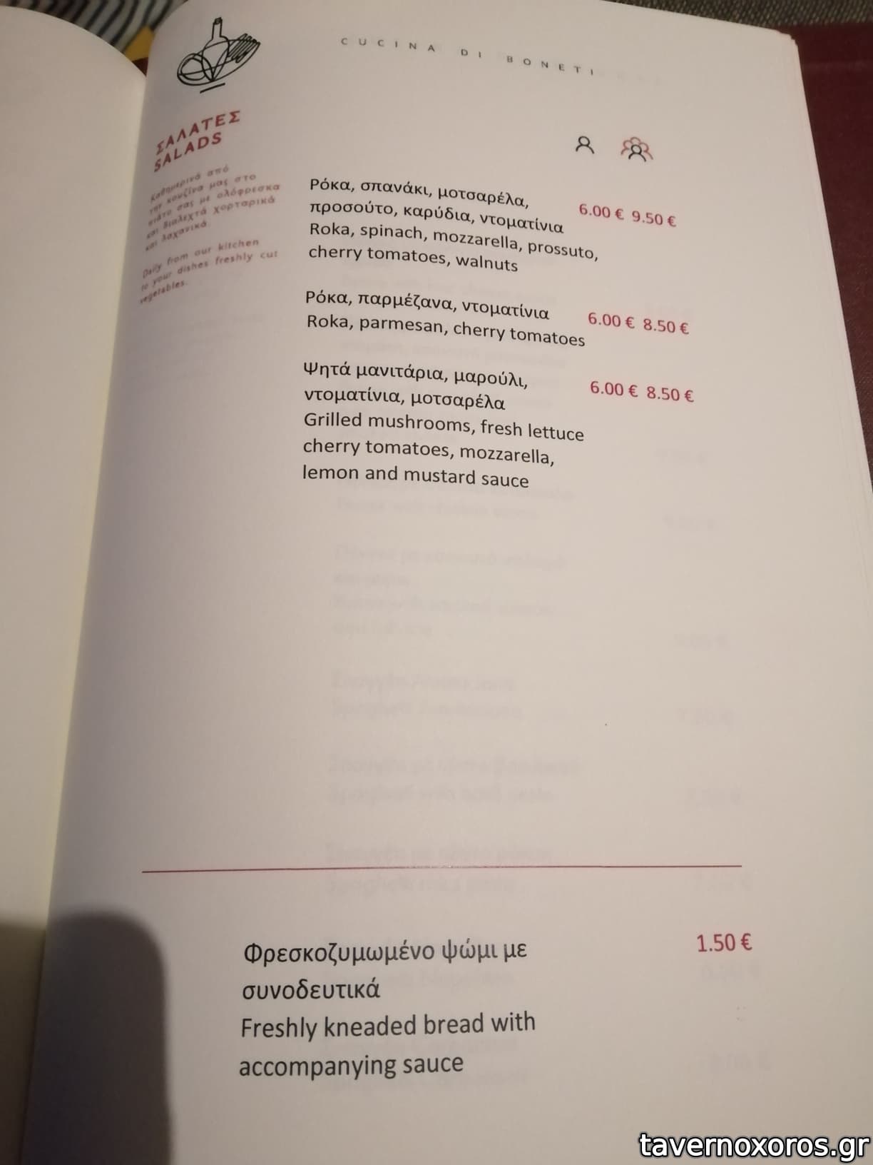 • Σαλάτα ρόκα, σπανάκι, mozzarella, prosciutto