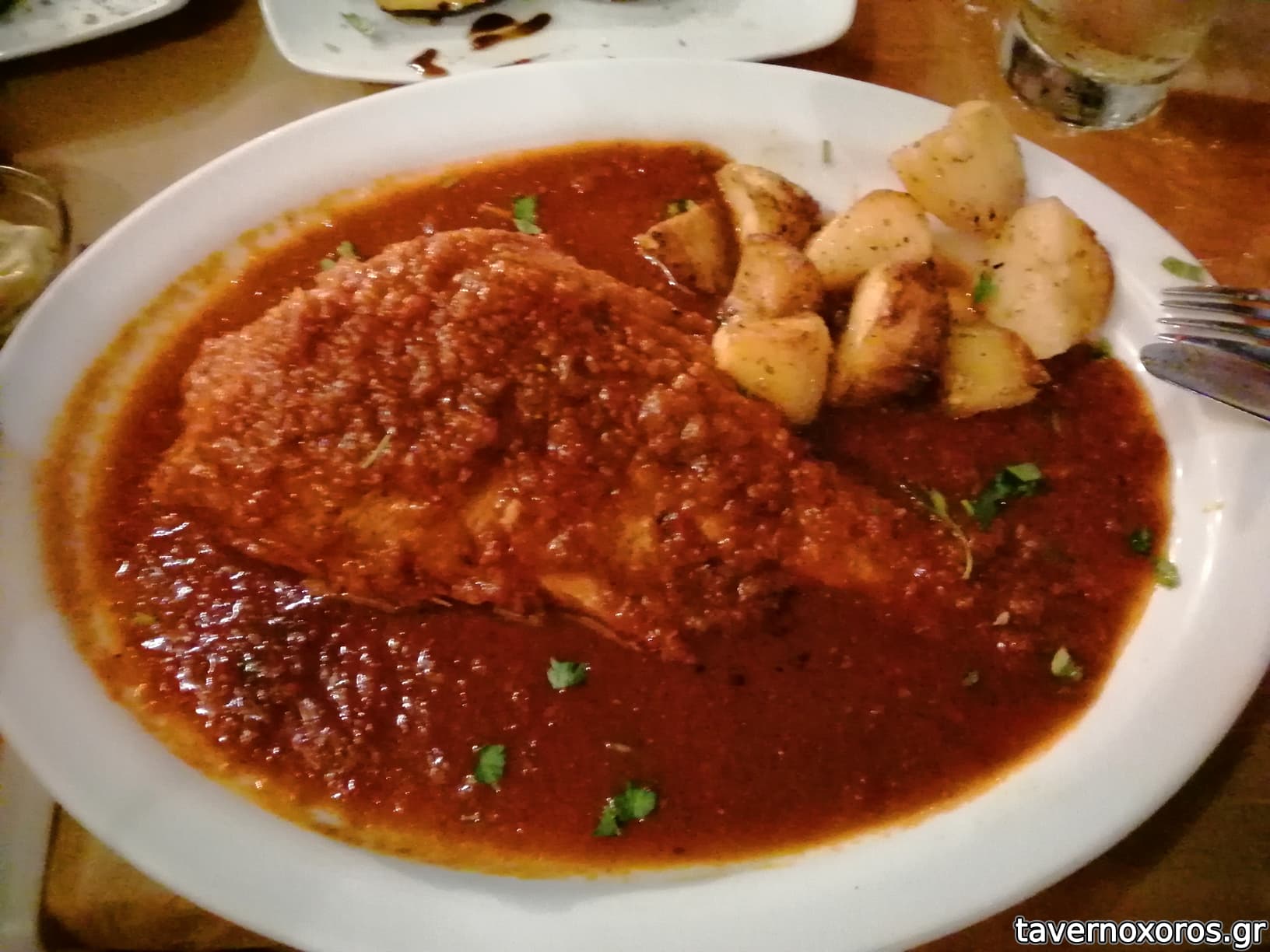 Μέτρια πράγματα. Η σπιτική πίτσα είναι ζυμάρι με υπερχειλές κίτρινο τυρί, το ψάρι στο μπουρδέτο που παρήγγειλα είχε εμφανώς μαγειρευτεί (βράσει) μόνο του και περιελούσθη με σάλτσα, η οποία μάλιστα ήταν και άσχετη σάλτσα παστιτσάδας (κόκκινη η μία κόκκινη και άλλη). Κάποια περιφερειακά συμπαθή και κερασμένο γλυκό, αλλά γενικώς δεν..