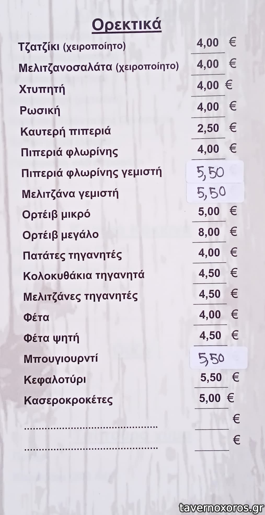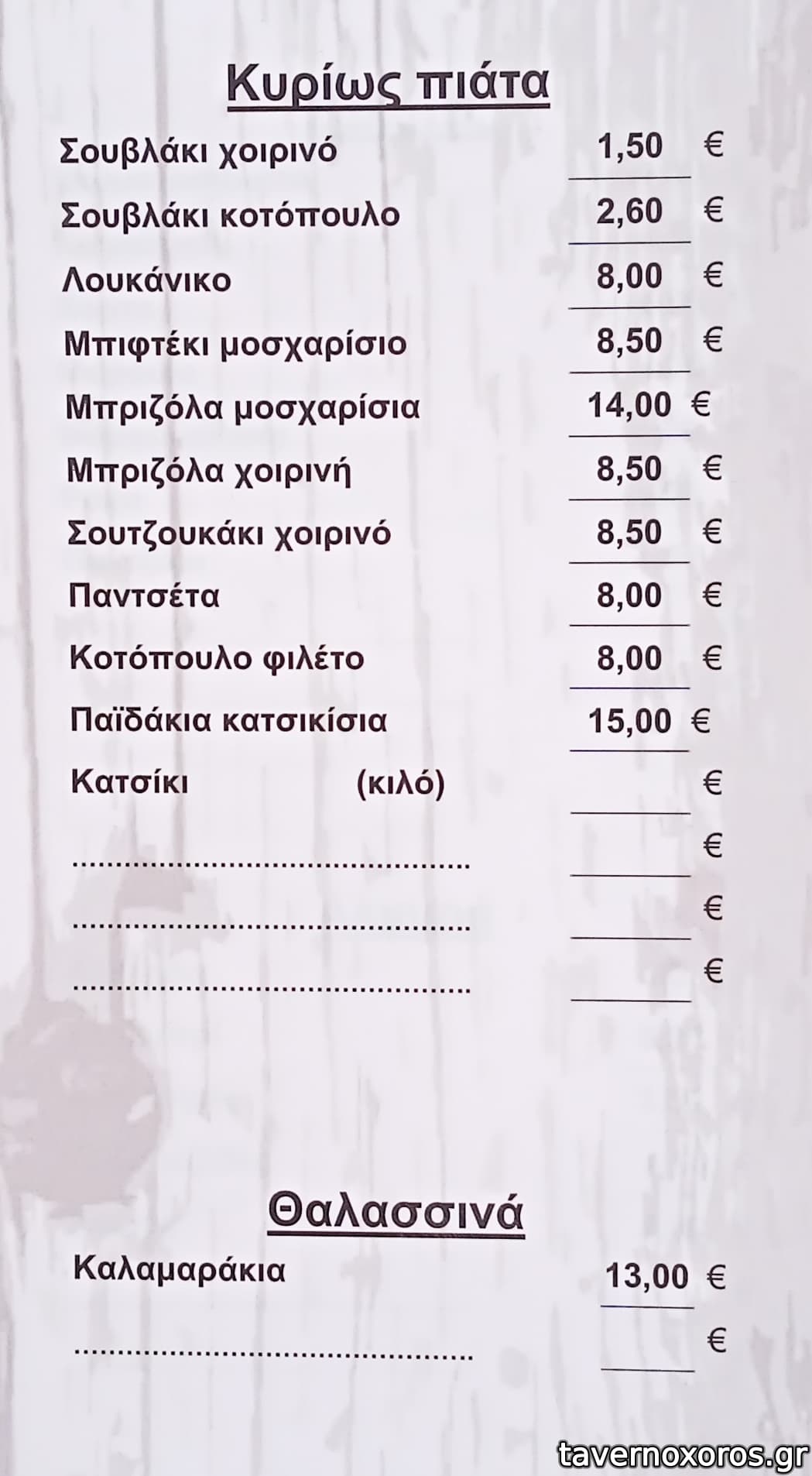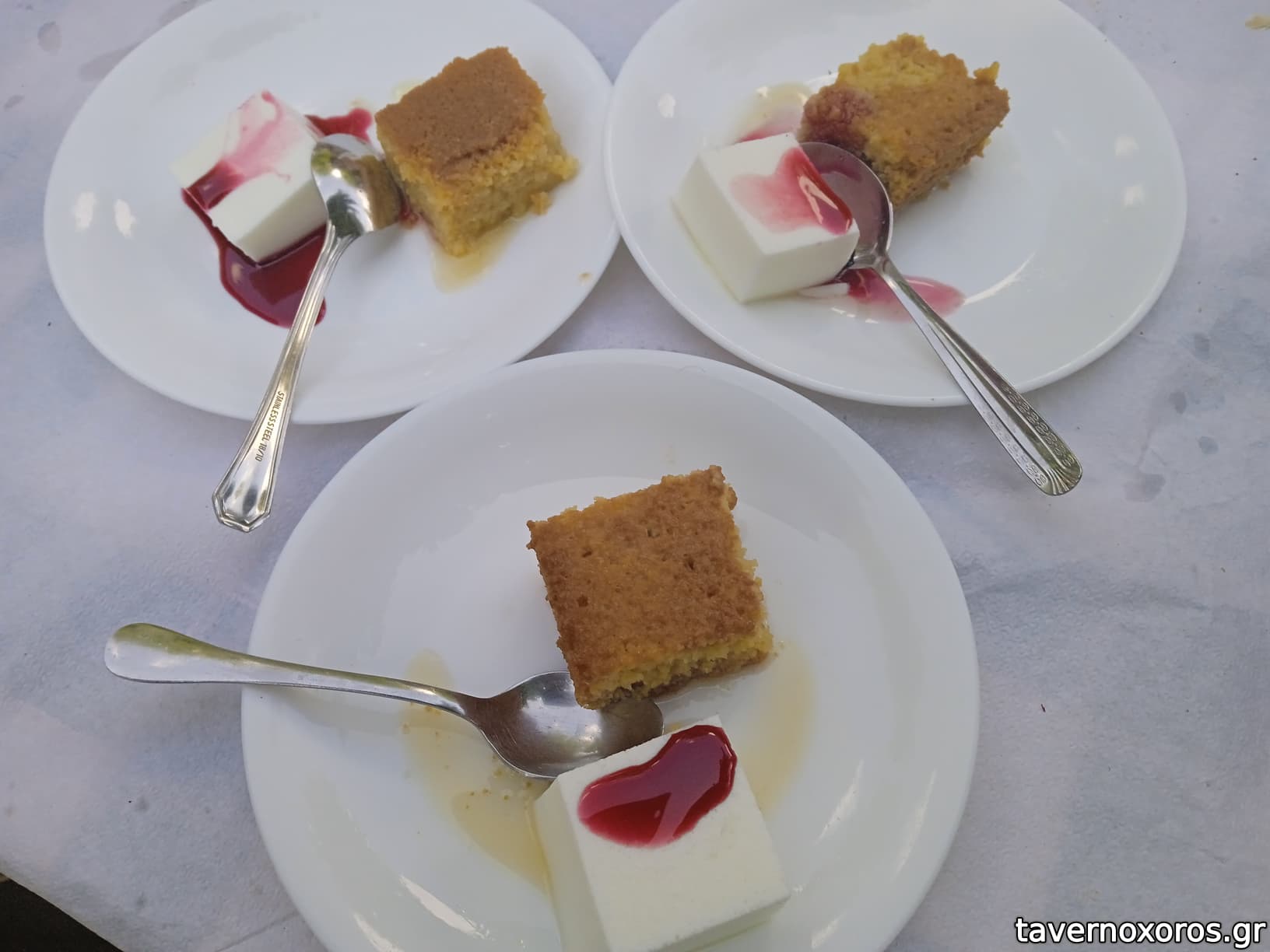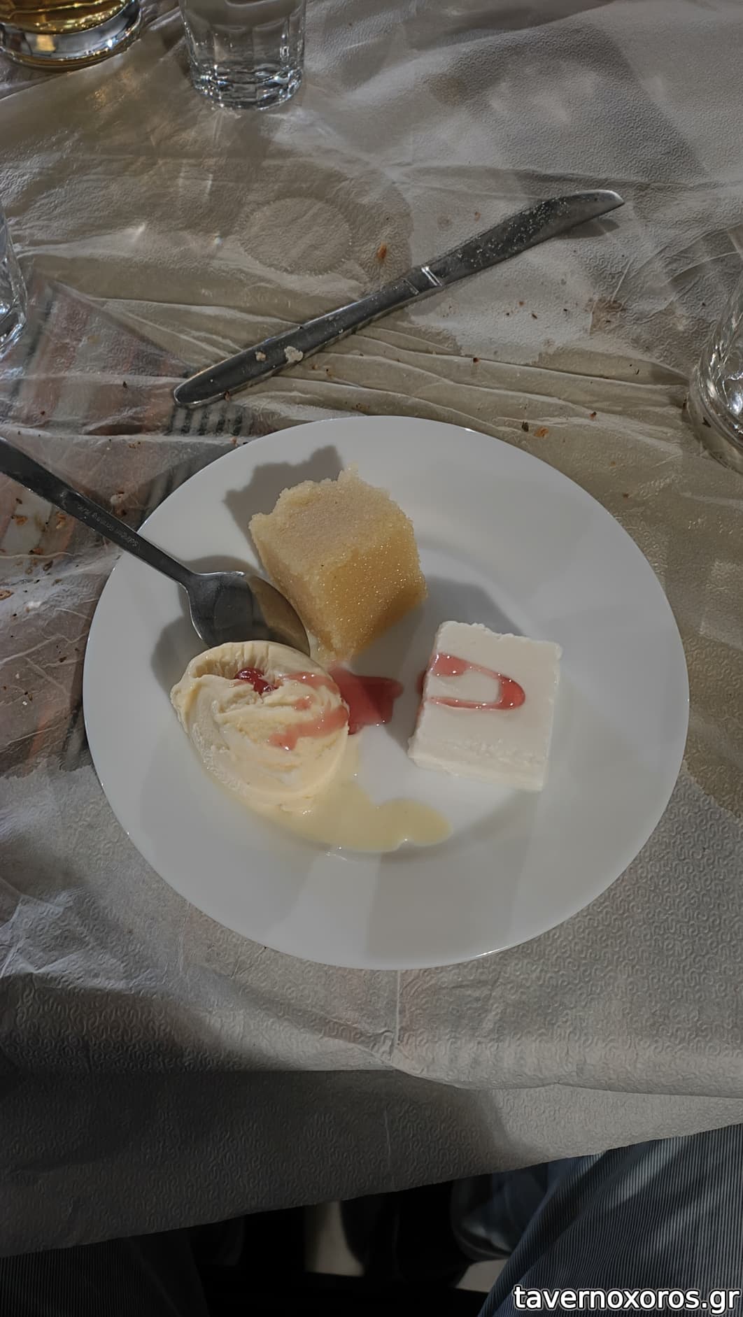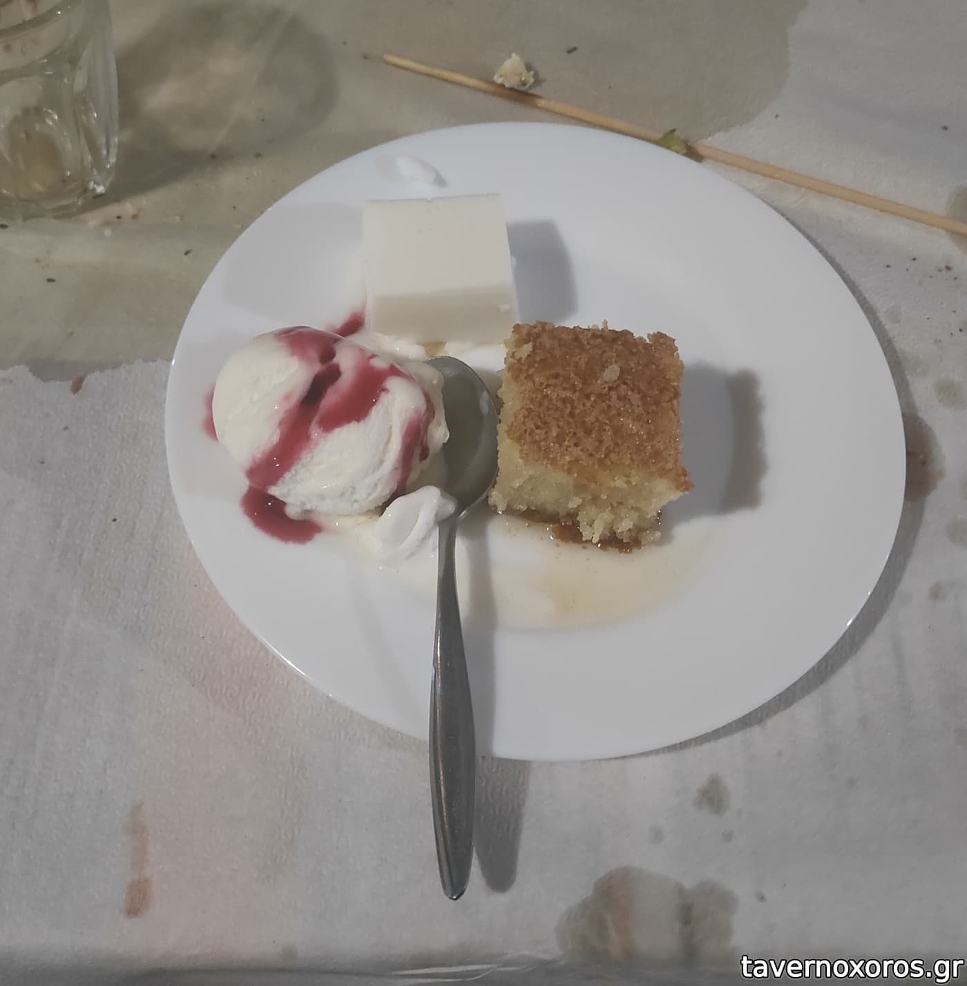 Στο τέλος μας κέρασαν γλυκάκια (ρεβανί και πανακότα). Σέρβις ευγενικό και σβέλτο. Τιμές φυσιολογικές (βλ. κατάλογο), περίπου 22 € το άτομο με συγκρατημένη κατανάλωση σε μπύρες και αναψυκτικά, συν ψωμάκι, νεράκι κλπ. Συνιστάται.