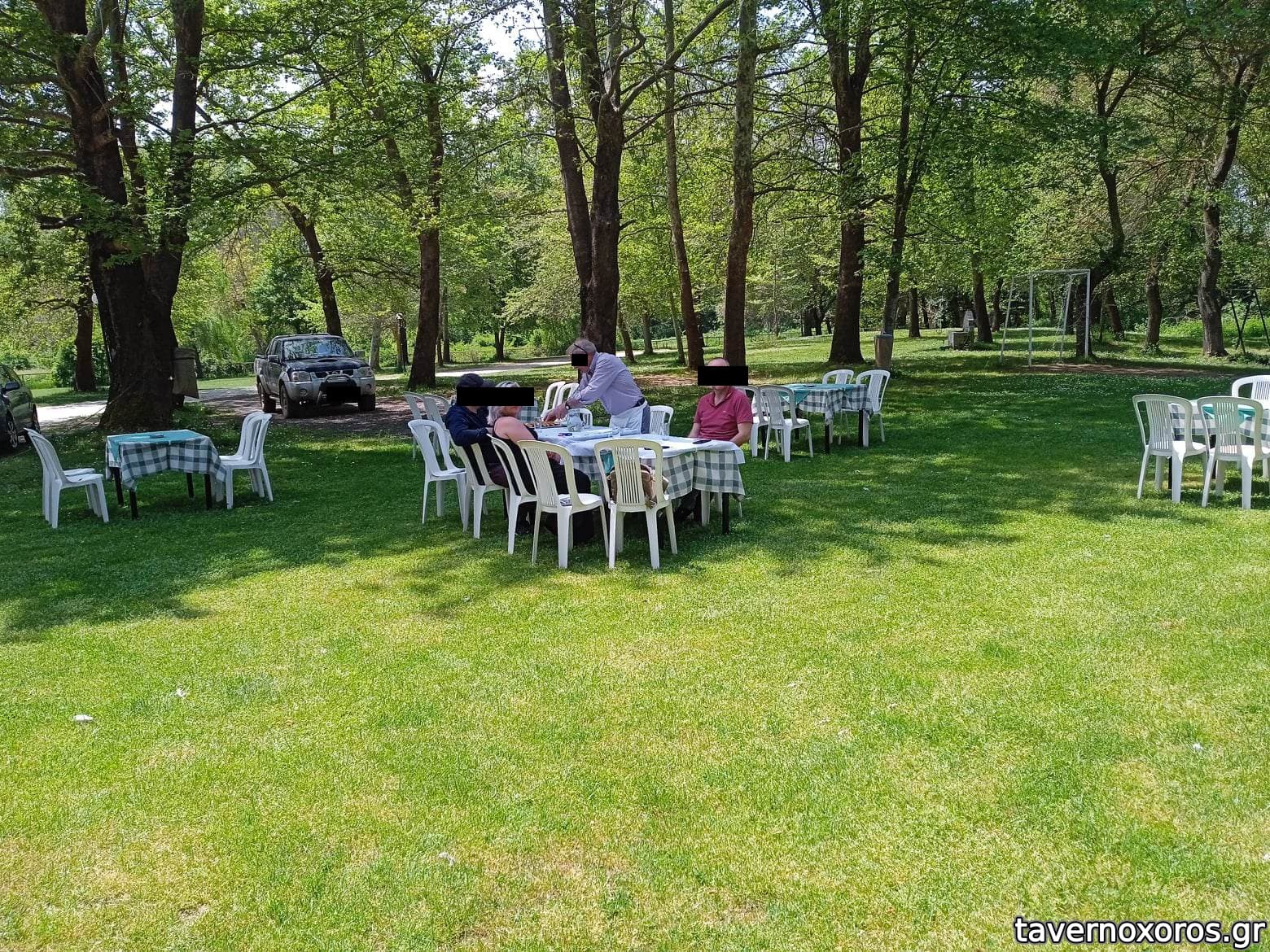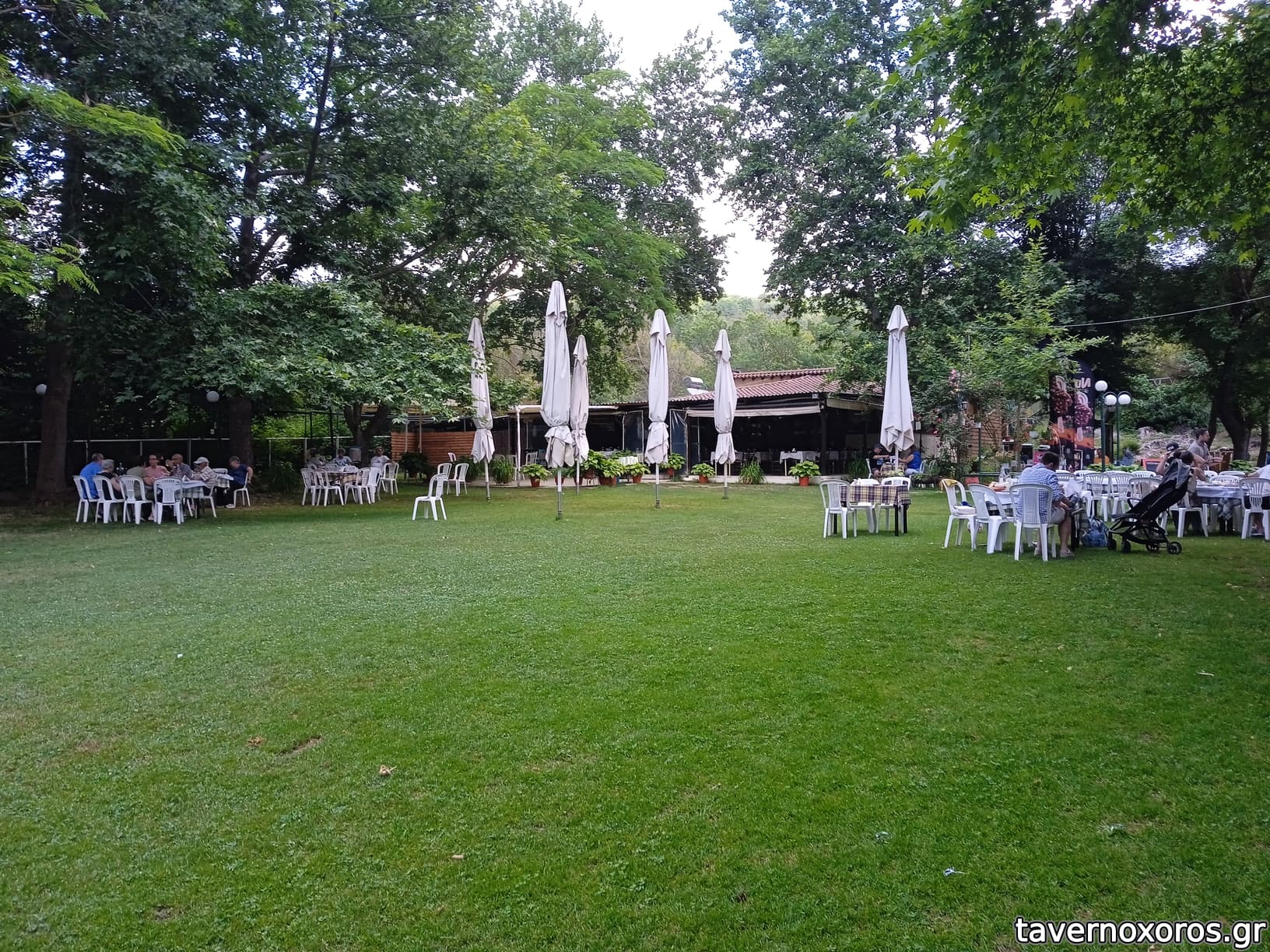 Ο χώρος είναι όντως φοβερός, όπως τον περιγράφουν οι προηγούμενοι. Μου άρεσε πολύ, τραπέζια κάτω από τα δέντρα μέσα στο γρασίδι, αλλά το φαγητό ήταν διαδικαστικό δυστυχώς: είχε ΜΟΝΟΝ χοιρινό. Σουβλάκια, Χοιρινή μπριζόλα και Παντσέτα!! Τα πήραμε όλα, ήταν χλωμά, ίσως μόνον η παντσέτα κάπως σωζόταν. Πατάτες τηγανητές μαλακωμένες και κολλημένες μεταξύ τους. Το σέρβις στα χαμένα, προσπαθούσε να προλάβει τα τραπέζια, αλλά δύσκολα..