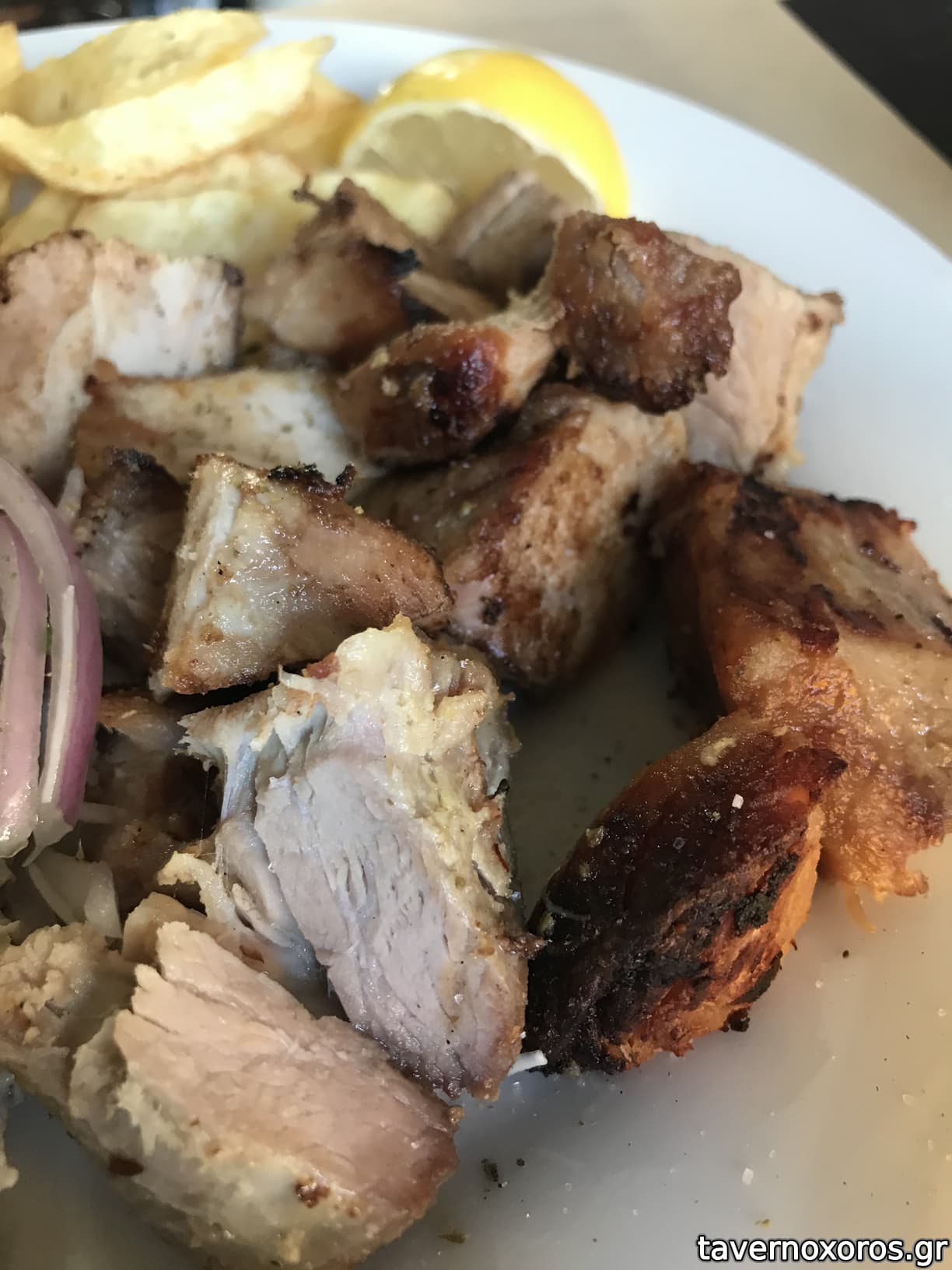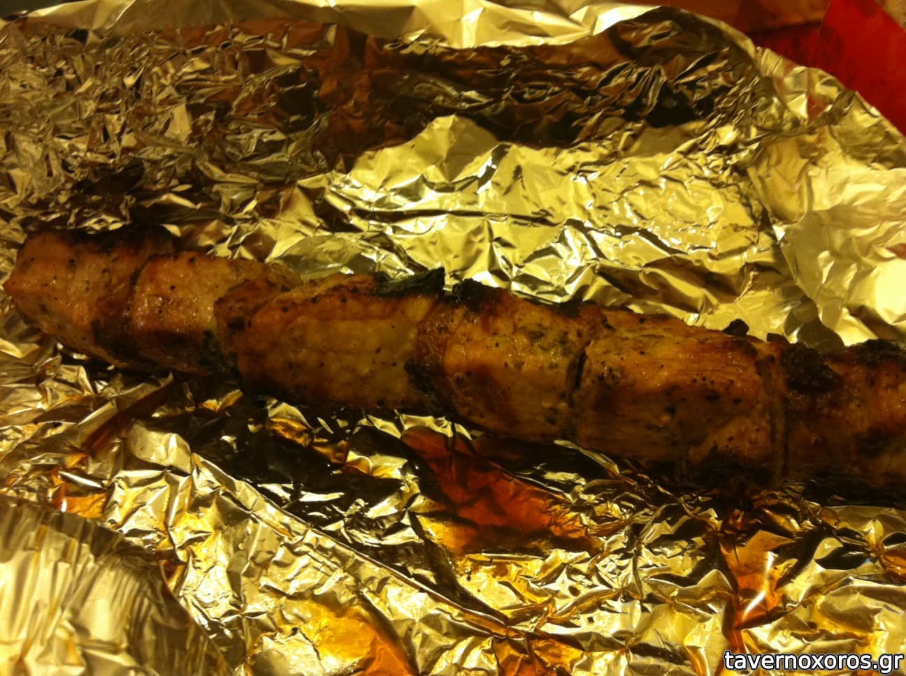 *σουβλάκι χοιρινο, καλή ποσότητα, νόστημο και καλοψημένο στα 1,