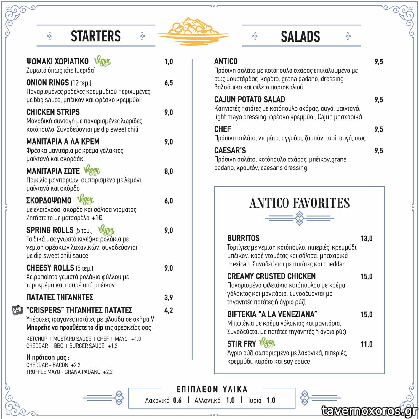 | Λέξεις κλειδιά | Άντικο, #pasta, #ιταλικό, #σουβλάκια, #σουτζουκάκια, #μπιφτέκι, #κοτόπουλο, #χοιρινή, #σαλάτες, #πεϊνιρλί, #σκορδόψωμο, #μανιτάρια, #burgers, #club sandwich |