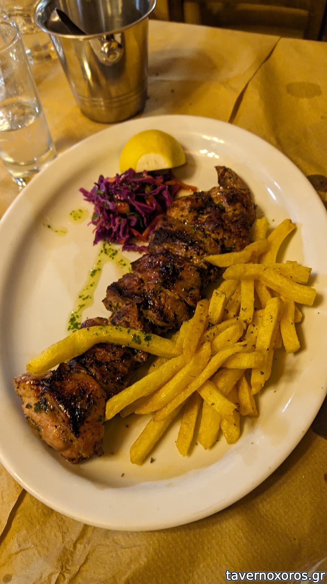 Χοιρινό κοντοσούβλι (9,5€, καλό κρέας αλλά μου φάνηκε ότι στέγνωσε στο ψήσιμο)