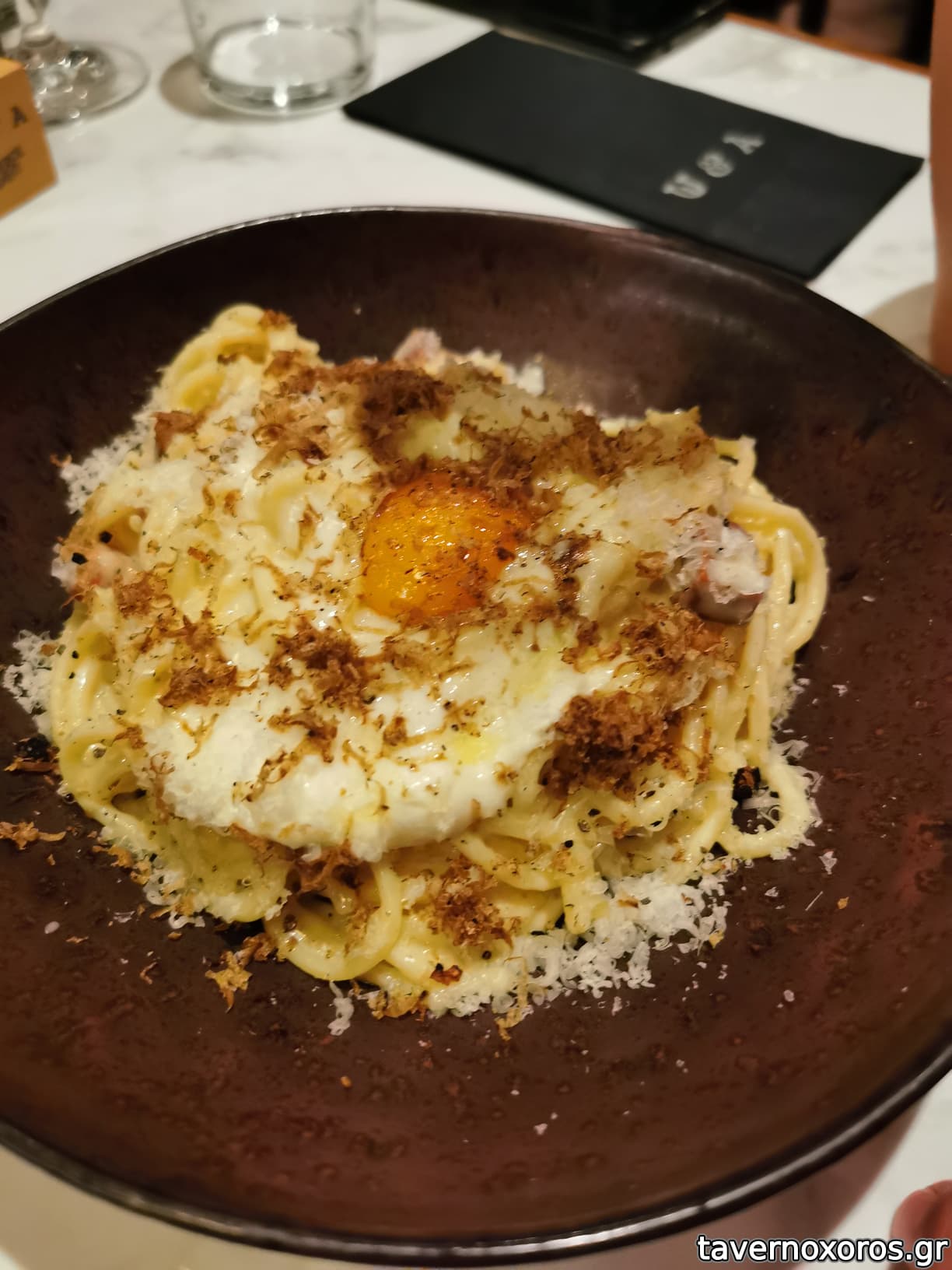 Σπαγγέτι με τρούφα και κονφί κρόκο (πολύ καλό)
