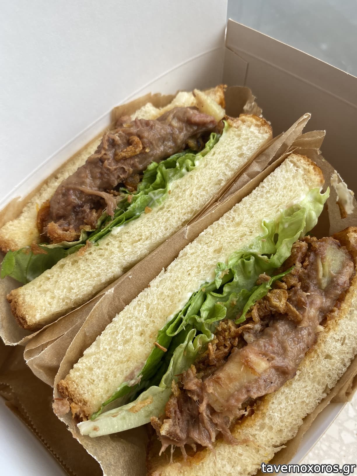Δοκίμασα τα σάντουιτς τους και αυτό ειδικά με την ουρά μόσχου ήταν εκπληκτικό! Μαλακό ψωμί ίσα να γλυκίζει σαν brioche, με το corn beef από ουρά μόσχου γεμάτο γεύση !