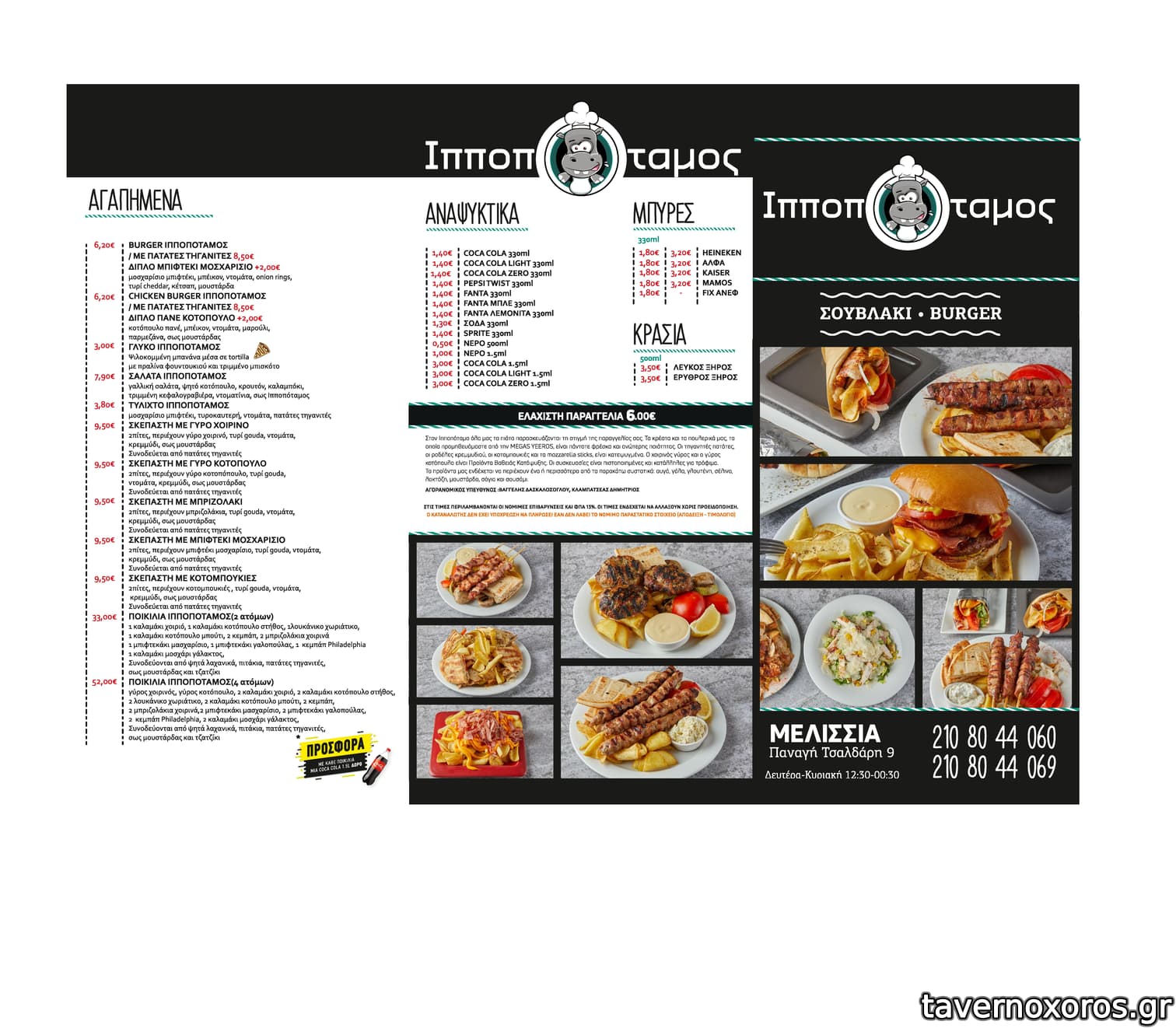 Δε-Πα 13:00-00:30, Σα 12:30-00:30, Κυ 12:30-00:30