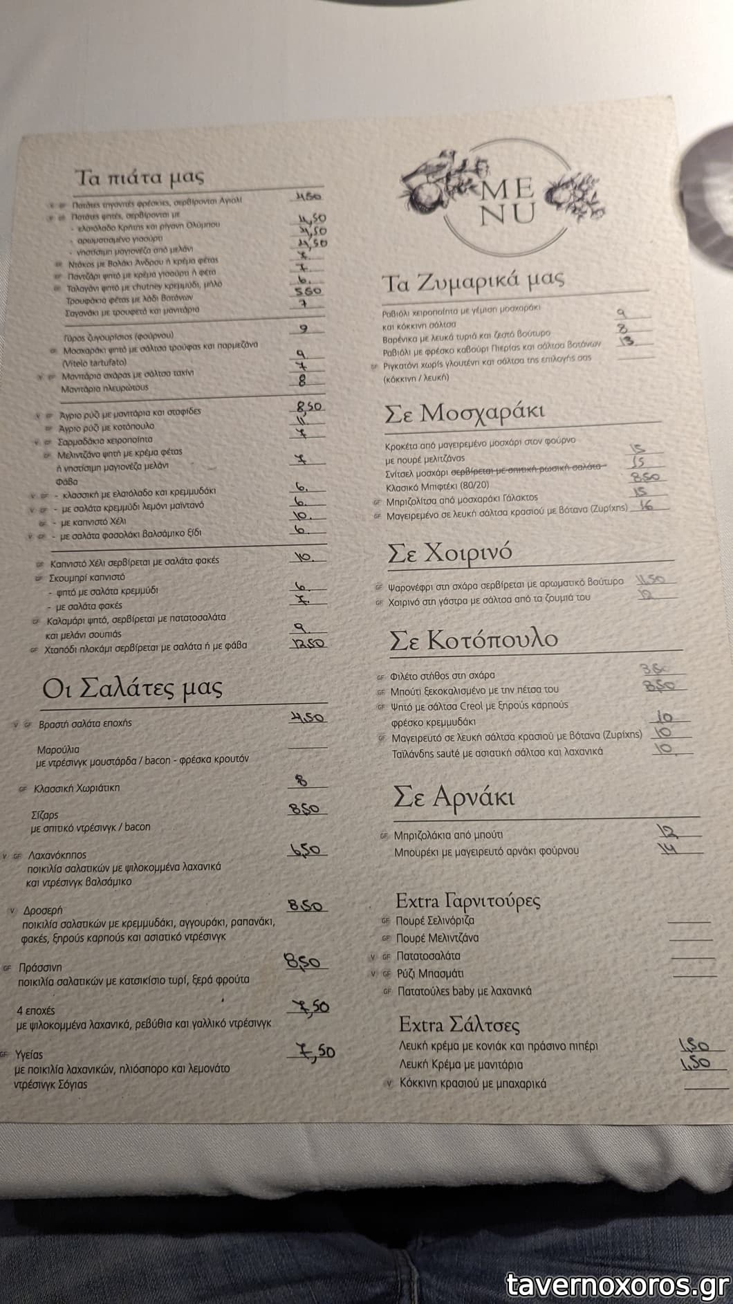Κρασί εκτός τακτικού καταλόγου (διέθετε καμιά 10αριά έξτρα), 2 ποτήρια.