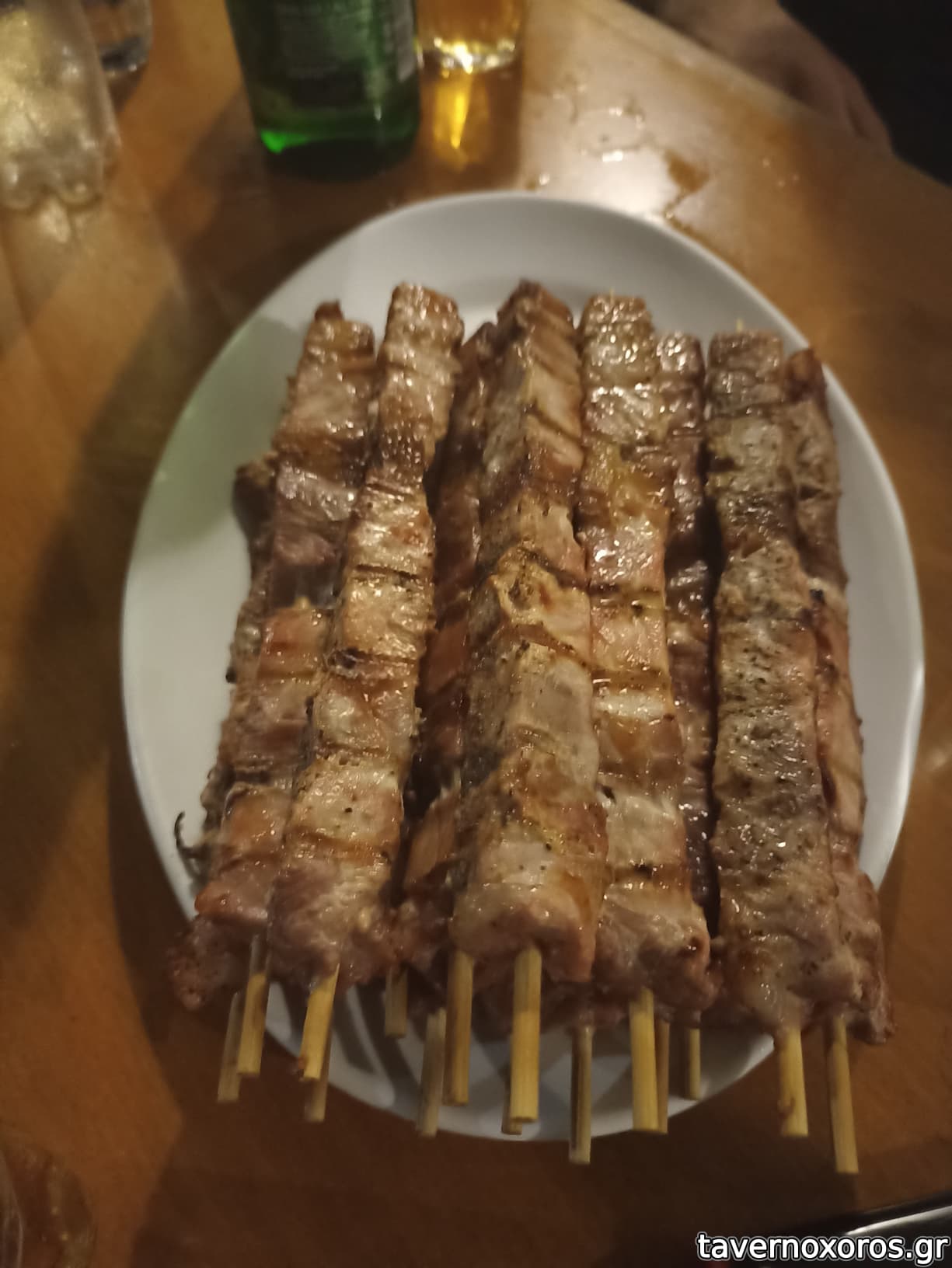 Τα σουβλάκια της φωτογραφίας "καταχρηστικά" ψηνόντουσαν, ώστε να καλύψουν την αυξημένη ανάγκη των επισκεπτ(ρι)ών στο Φιλότι για φαγητό. 60 τεμάχια (2€ έκαστο) καλούτσικα, αν και με το λιπάκι τους και ορισμένα στεγνά κομμάτια. Βάλσαμο στην πείνα, όμως. Η ρακή του αρκετά καλή. Γλυκειά καφενειακή κατάσταση, overall.
