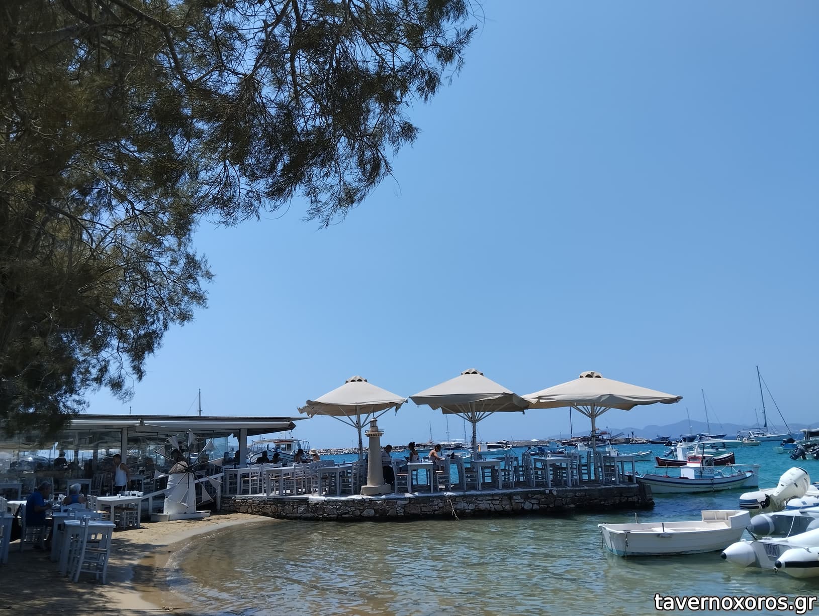Τραπεζάκια το ένα πάνω στο αλλο, κατακοκκινοι τουρίστες στοιβαγμένοι ο ένας πάνω στον άλλον, κουρασμένα γκαρσόνια να πηγαινοέρχονται ασταμάτητα.