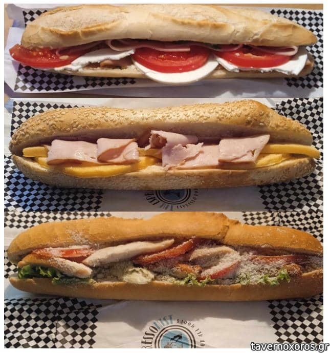 Νοέμβριος 2023, παραγγείλαμε ντελίβερι μία μπαγκέτα μανούρι - γαλοπούλα - ντομάτα 3,30 €, ένα «koulourette» καπνιστή μπριζόλα - αβγό 3,90 € και μία κάτω μπαγκέτα κοτόπουλο - ντομάτα - μαρούλι - παρμεζάνα 3,60 € (βλ. φωτο). Όλα τα σάντουιτς καλά, πλην του κουλουριού, το οποίο περιείχε κάτι κομμάτια «αβγού». Ντελίβερι γρήγορο.