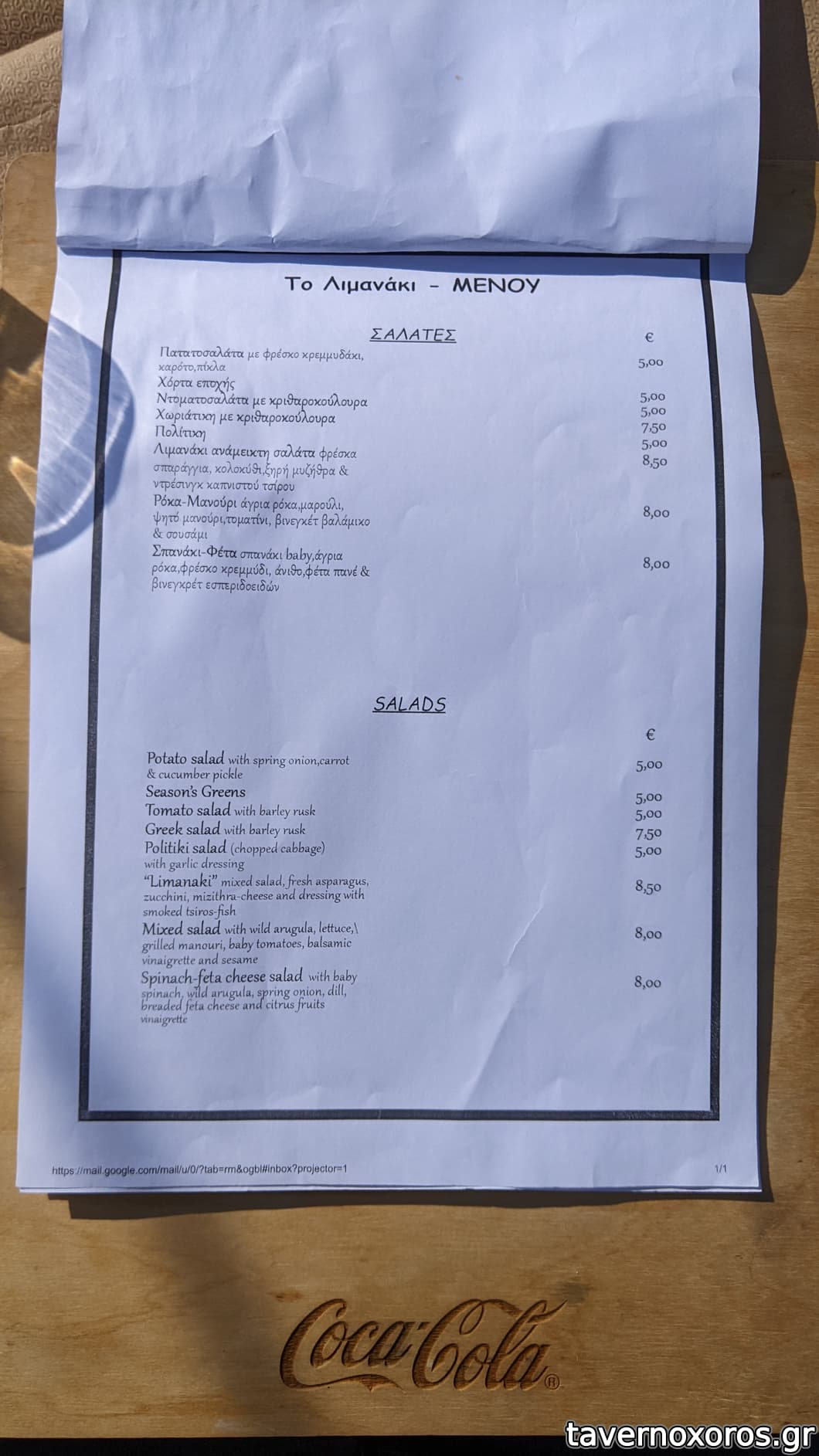 Στο τέλος μας κέρασαν παγωτάκια. Δεν ήρθε ποτέ στο τραπέζι προσωρινή απόδειξη. Όταν ζητήσαμε να πληρώσουμε, έφεραν ένα ανεπίσημο χαρτάκι με τον τίτλο «ανάλυση λογαριασμού» (σύνολο 143,