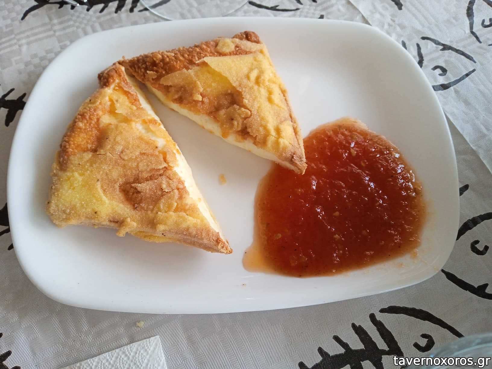 Κεφαλοτύρι σαγανάκι με μαρμελάδα ντομάτας