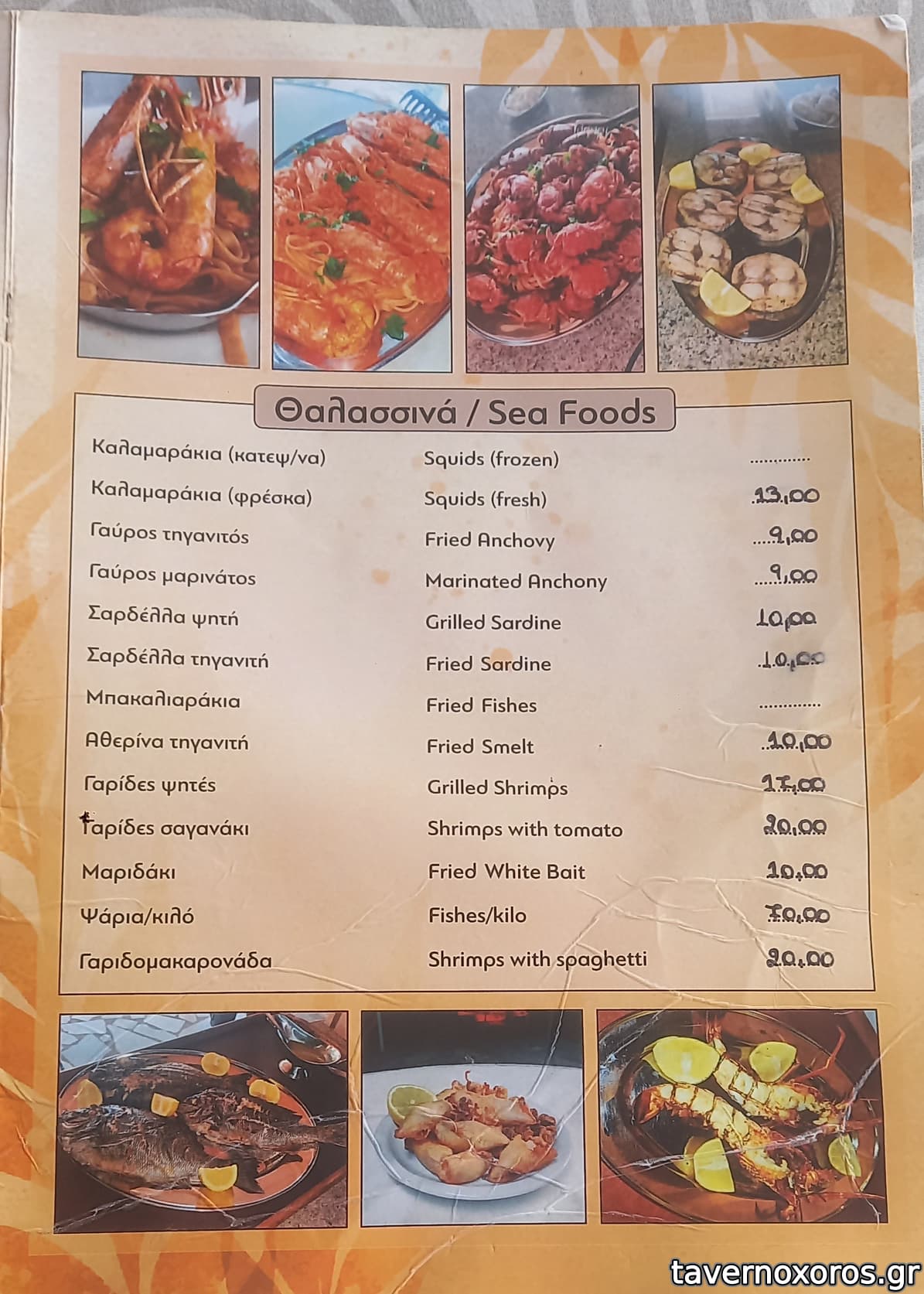 Δοκιμάστηκαν κολοκυθοκεφτέδες (καλοί), κρίταμο ψιλό που το είχε κάνει κάπως σαν τουρσί και που μας είπε πως δεν το σερβίρουν αλλού εύκολα (καλό), πατάτες τηγανητές (πολύ καλές), γόνος καλαμαριού (πολύ καλός) και επειδή μας είχε προταθεί να δοκιμάσουμε μεγάλο ψάρι πήραμε και ένα σκαθάρι και ένα μουσμούλι. Και εδώ χρειάζεται ειδική αναφορά και στην γεύση αλλά και στο ψήσιμο το οποίο ήταν μαεστρικό. Θα τολμήσω να πω πως ήταν ίσως το καλύτερο ψάρι που έχω φάει (μου αρέσουν πολύ αυτά τα δύο). Ο ιδιοκτήτης λέει οτι πέρα από το ψήσιμο παίζει μεγάλο ρόλο πως η θάλασσα στην περιοχή αυτή έχει παραπάνω αλάτι. Όπως και να'