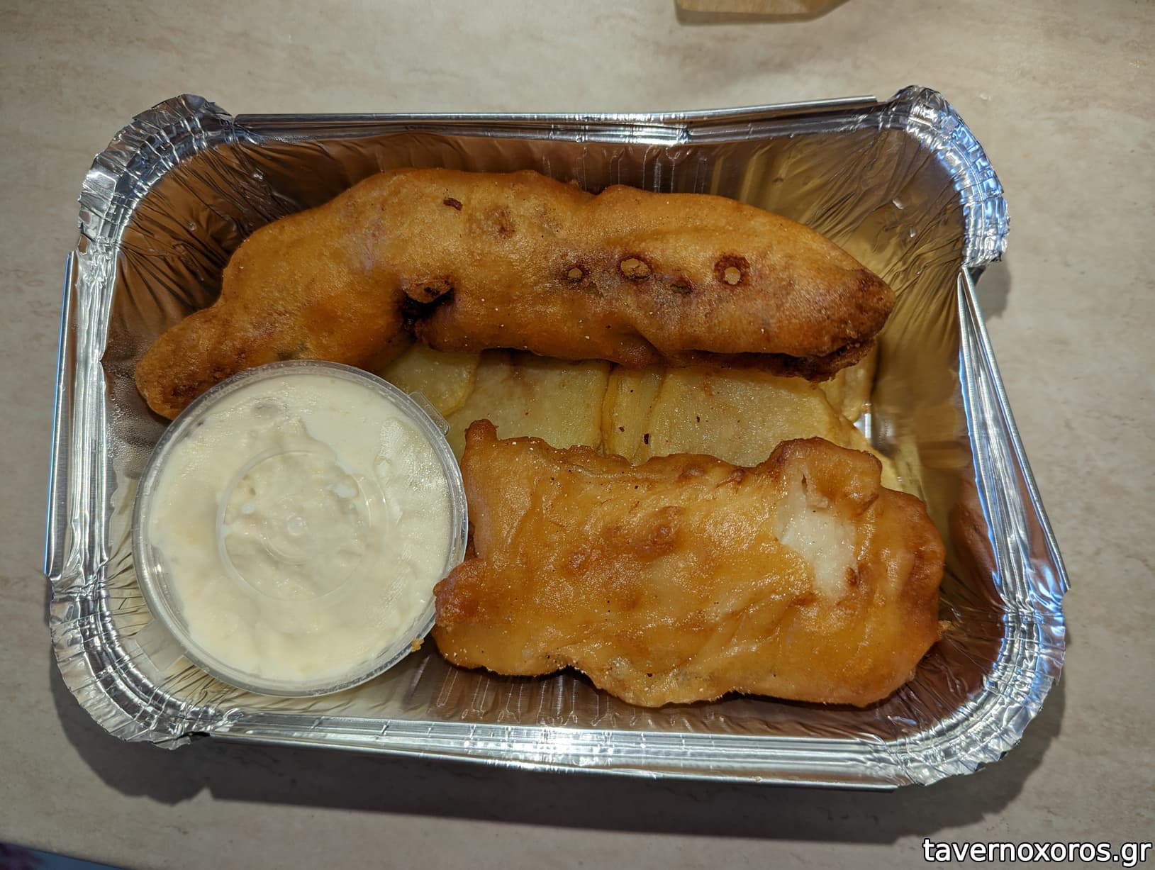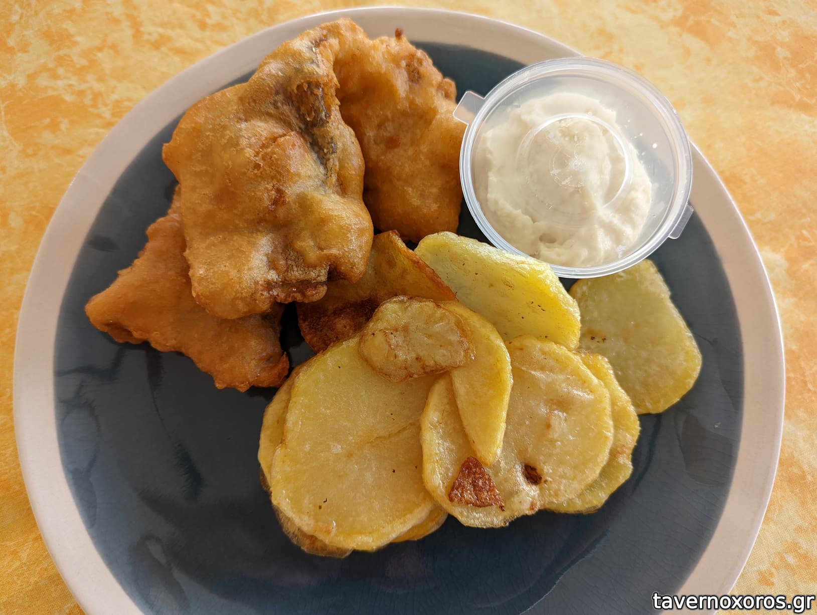 Μπακαλιάρος σκορδαλιά (πολύ καλός, σωστά ξαλμυρισμένος, ελαφρύς, η σκορδαλιά νόστιμη με πατάτα και μάλλον είχε και μαγιονέζα)