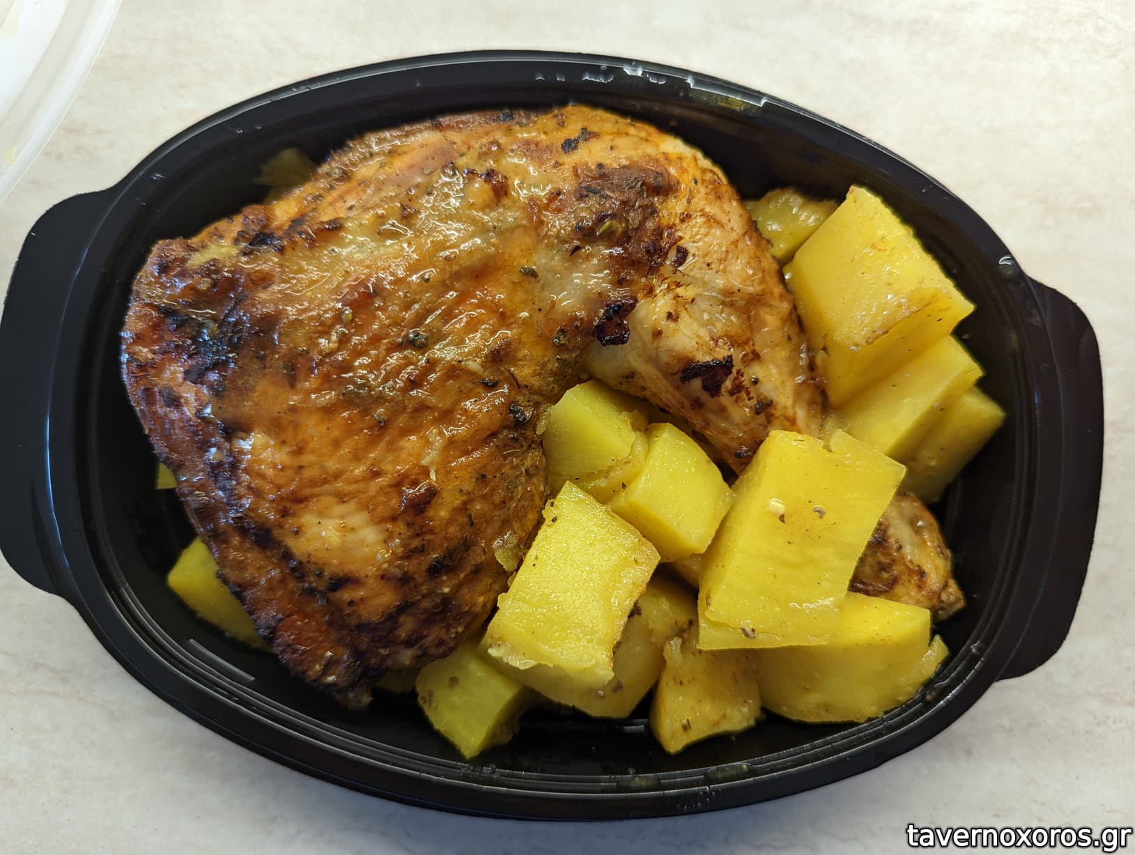 Κοτόπουλο με πατάτες (μέτριο ήταν, το κοτόπουλο δεν ψήθηκε καλά)