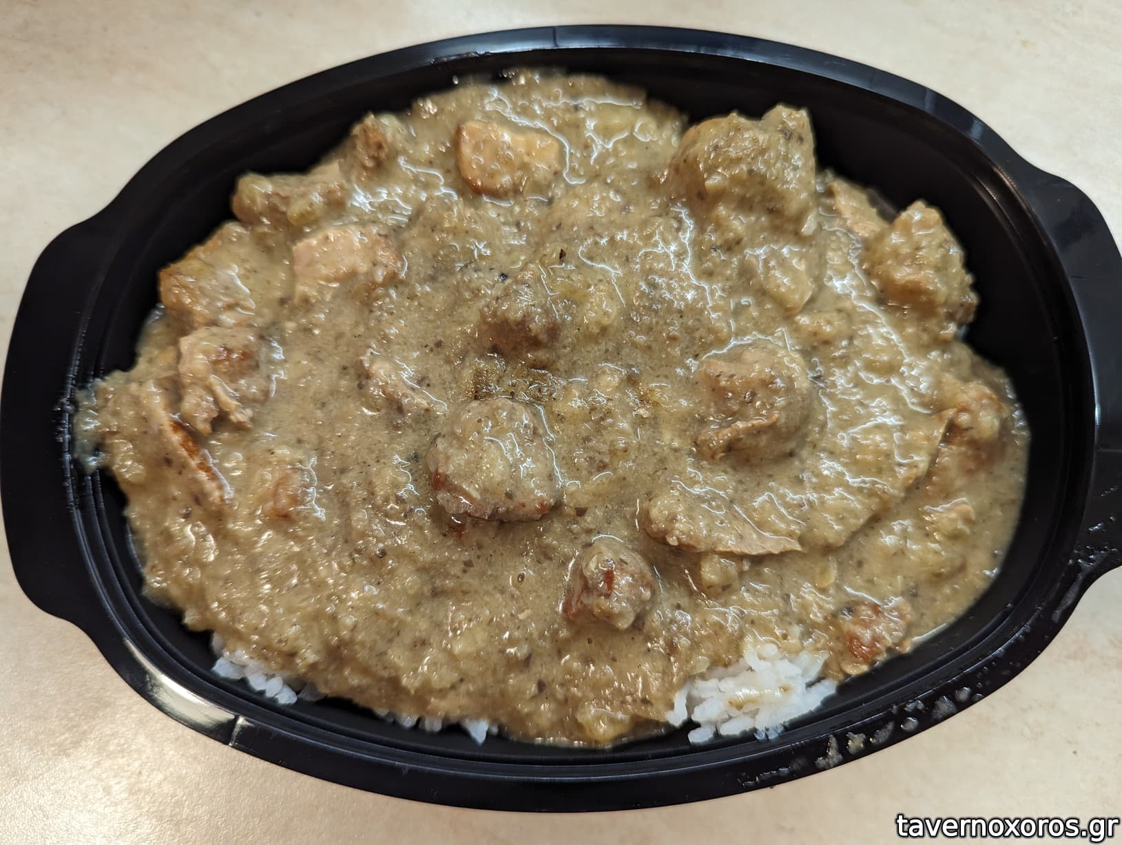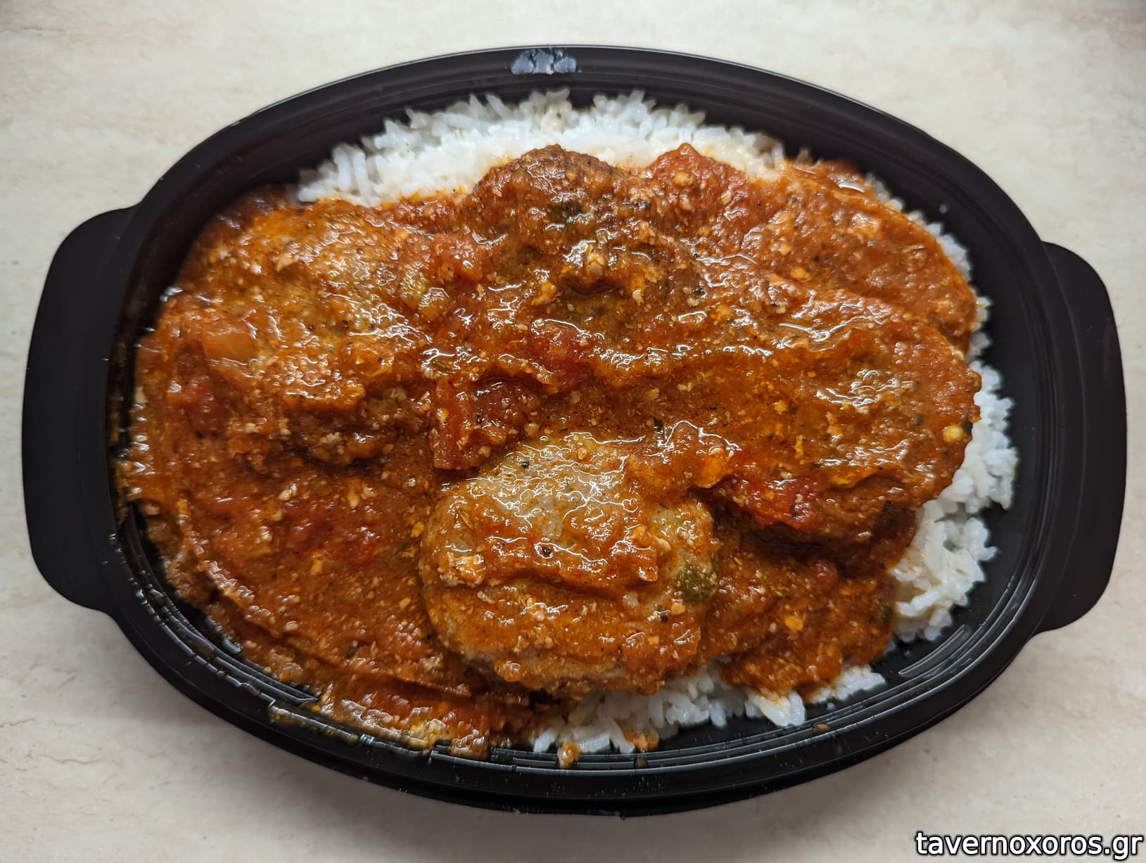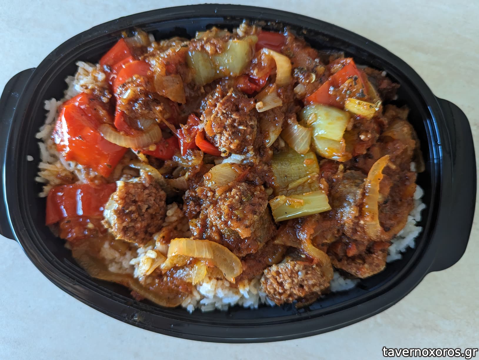 Κεφτεδάκια με σάλτσα (νόστιμα, ειδικά η σάλτσα) και ρύζι