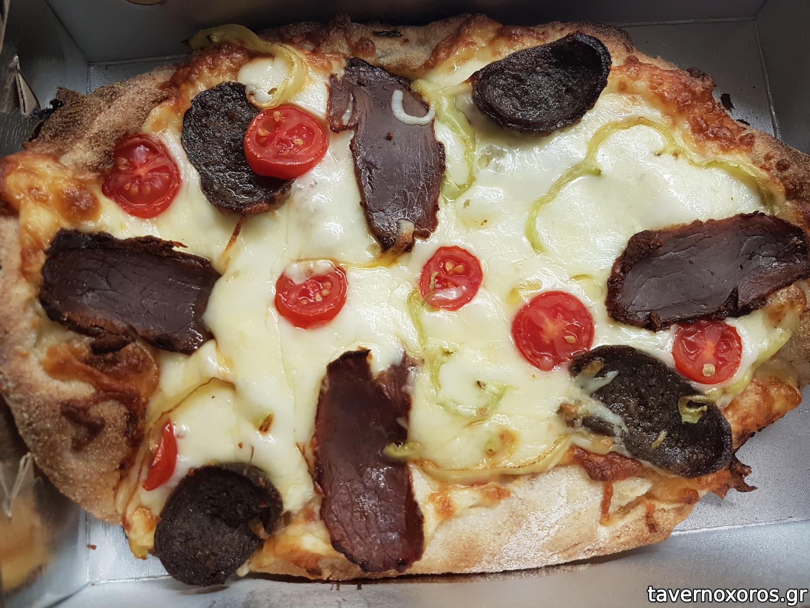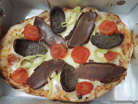 "Pizza l'Armenie": Πίτσα ανατολής ψημένη σε ξυλόφουρνο χειροποίητη με παστουρμά, σουτζούκι, κασέρι, ντομάτα και πιπεριά (πολύ καλό, θα το ξανάπαιρνα)