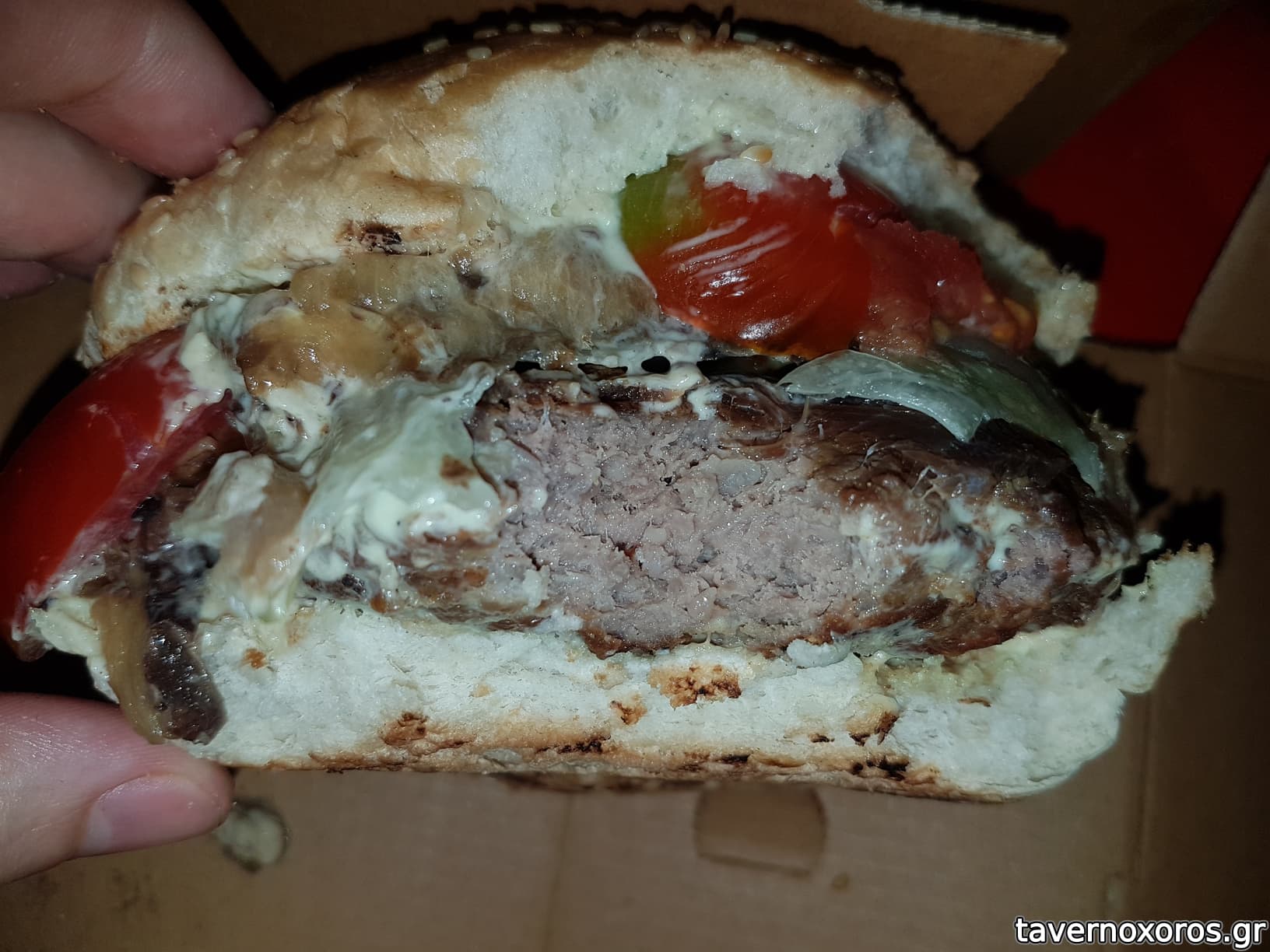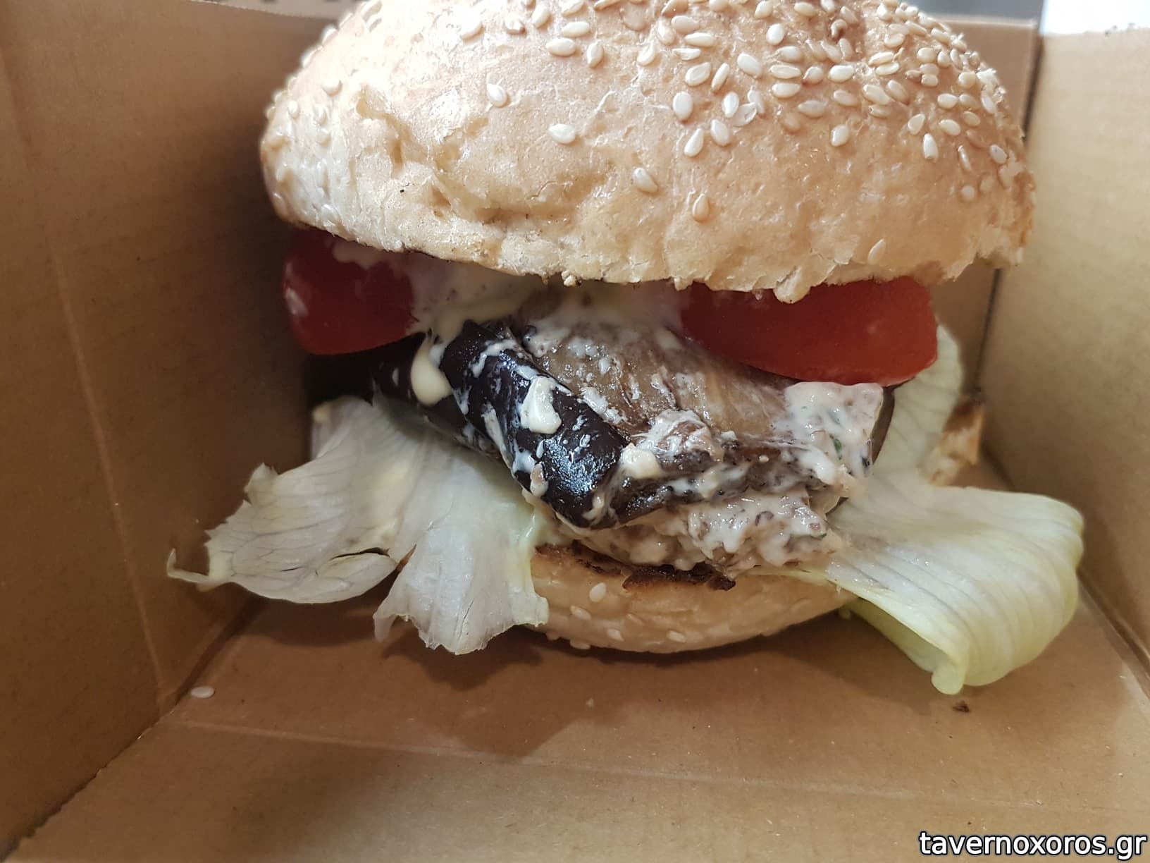 "Lusine 2050 Burger": Λευκό ψωμάκι με σουσάμι, μπιφτέκι 150g, sauce Erebuni, παστουρμάς αρμένικος, iceberg, ντοματίνι και τυλιχτή μελιτζάνα με καρύδι (η μελιτζάνα και ο παστουρμάς καλή ιδέα, αλλά δεν θα το ξανάπαιρνα γιατί δεν μου ταιριάζει το μπιφτέκι)
