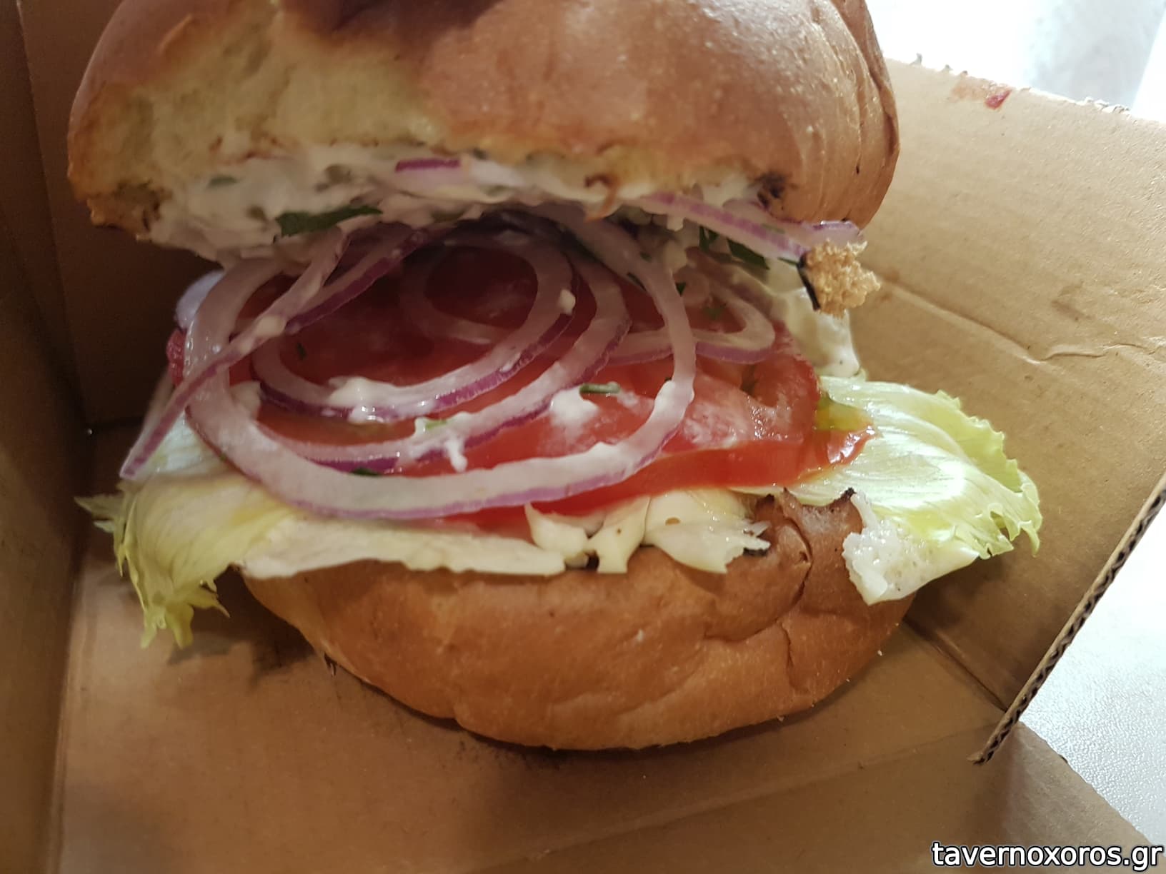 "Ajika Spicy Burger": Ψωμάκι brioche, μπιφτέκι 150g, ajika sauce, λιωμένο τυρί σε κλωστές, iceberg, ντομάτα, κρεμμύδι σε ροδέλες και ρώσικη σαλάτα (αδιάφορο, η ajika δεν ήταν παραδοσιακή αντζίκα)