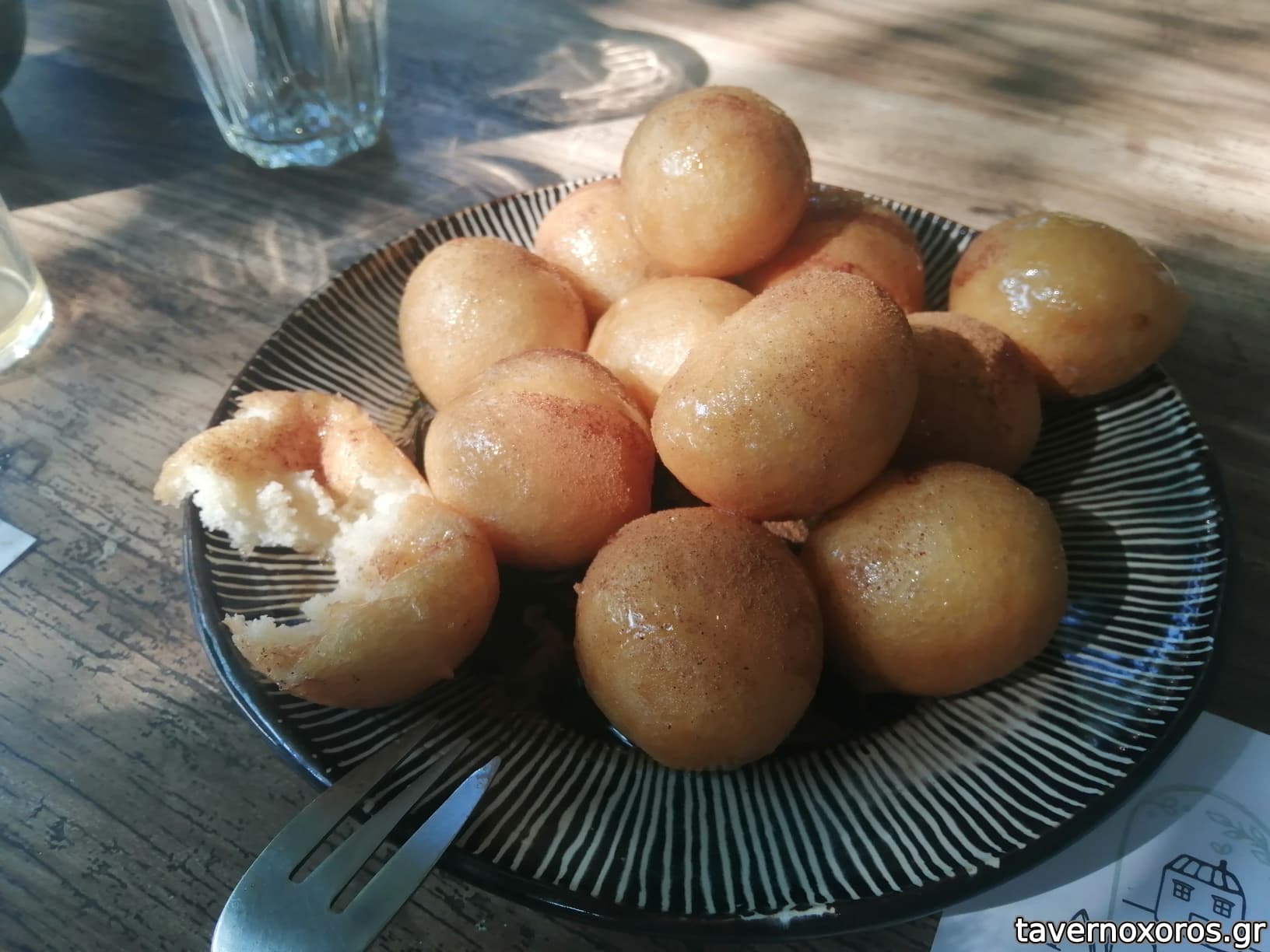 Λουκουμάδες με μέλι - κανέλα (6,5€, πολύ μέτριοι, πολύ ψωμωμένοι)