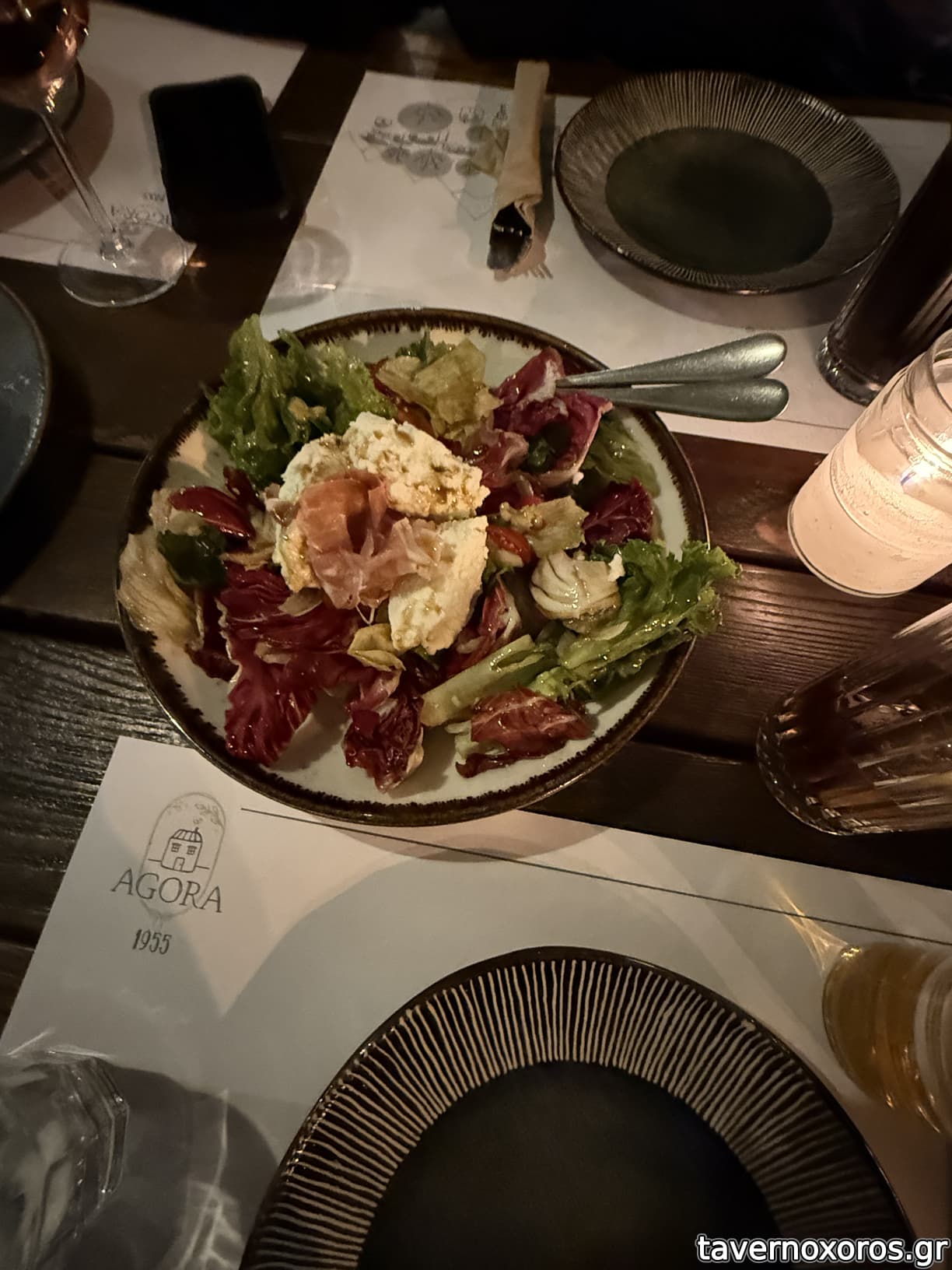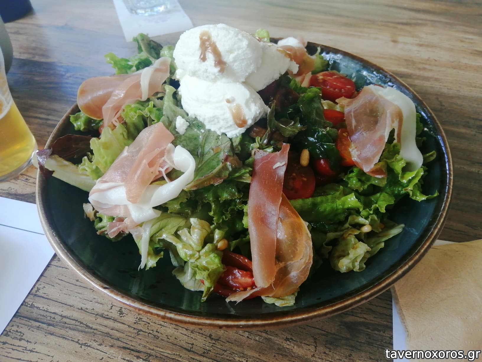 Πράσινη σαλάτα με προσούτο, ξινοτύρι (11€, μια χαρά ωραία)