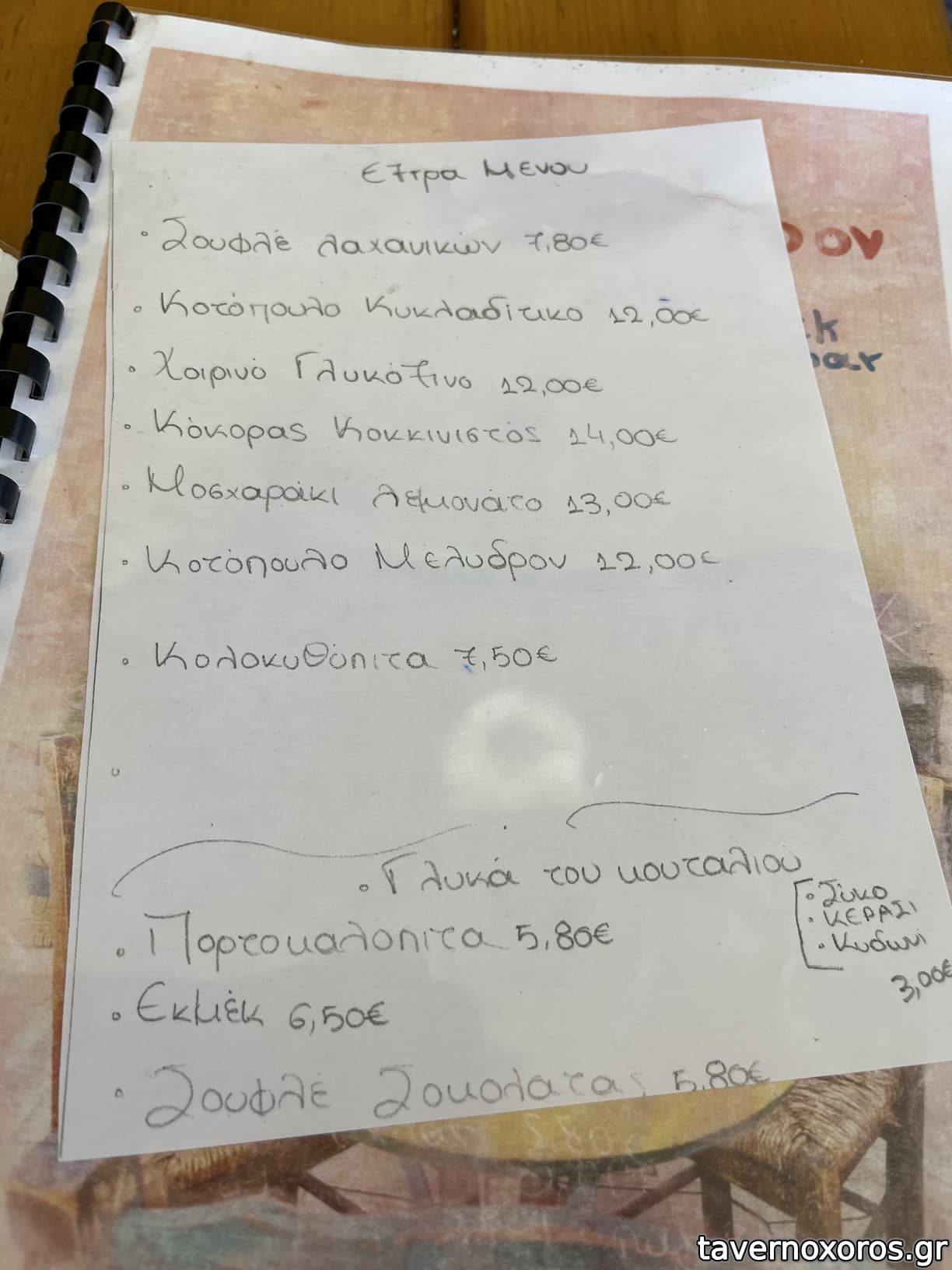 | Λέξεις κλειδιά | #σπεσιαλιτέ μαϊντανοσαλάτα, #cafe, #πρωινό, #αυγά, #ομελέτα, #στραπατσάδα, #σφακιανή πίτα, #τοστ, #snacks, #παιδικό μενού, #ντάκος, #μαϊντανοσαλάτα, #καπαροσαλάτα, #λούζα, #ξινοτύρι, #λουκάνικο, #σκοτύρι, #τηγανόψωμα, #ντοματοκεφτέδες, #φάβα, #παστουρμαδόπιτα, #κεφτεδάκια, #κοτόπουλο, #πανσέτα, #μπιφτέκι, #σουτζουκάκια, #εξοχικό χοιρινό, #γαύρος μαρινάτος, #γαρίδες, #χοιρινό κατσαρόλας, #κόκορας, #κοκκινιστό, #μοσχαράκι λεμονάτο, #κότσι, #σουτζουκάκια σμυρνέικα, #αρνάκι στο φούρνο, #μουσακάς, #γεμιστά, #πιπεριές, #γαρδουμπάκια, #στιφάδο, #πορτοκαλόπιτα, #εκμέκ, #γλυκά του κουταλιού |