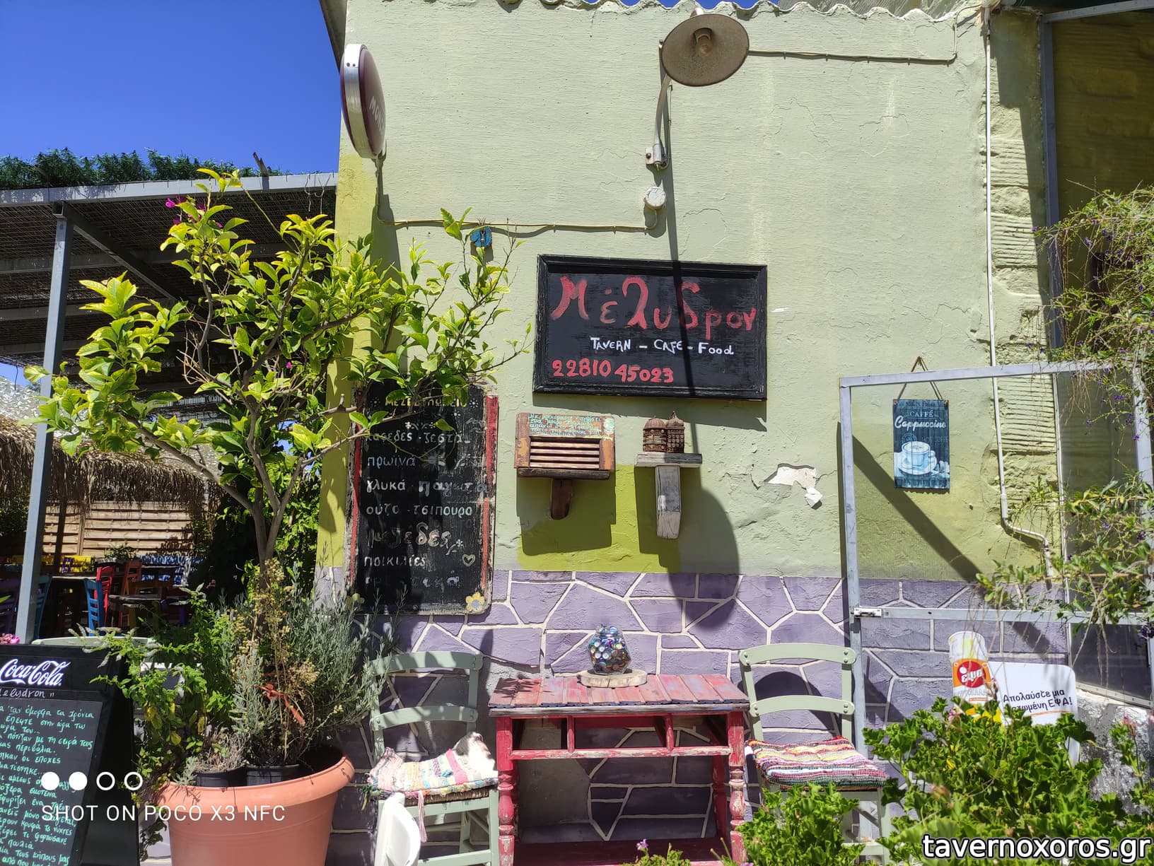 Ο χώρος ιδιαίτερος και πολύ όμορφος, η μουσική εξαιρετική και στη σωστή ένταση (Αγγελάκας, Ιωαννίδης, Θανάσης). Πολύχρωμα τραπεζοκαθίσματα, δεντράκια, λουλούδια. Στίχοι ποιητών γραμμένοι στα παντζούρια και στον διακοσμητικό φράκτη. Λόγω του ιδιαίτερου χαρακτήρα, απευθύνεται κυρίως σε ανθρώπους που τους αρέσουν αυτούς του είδους τα μαγαζιά.