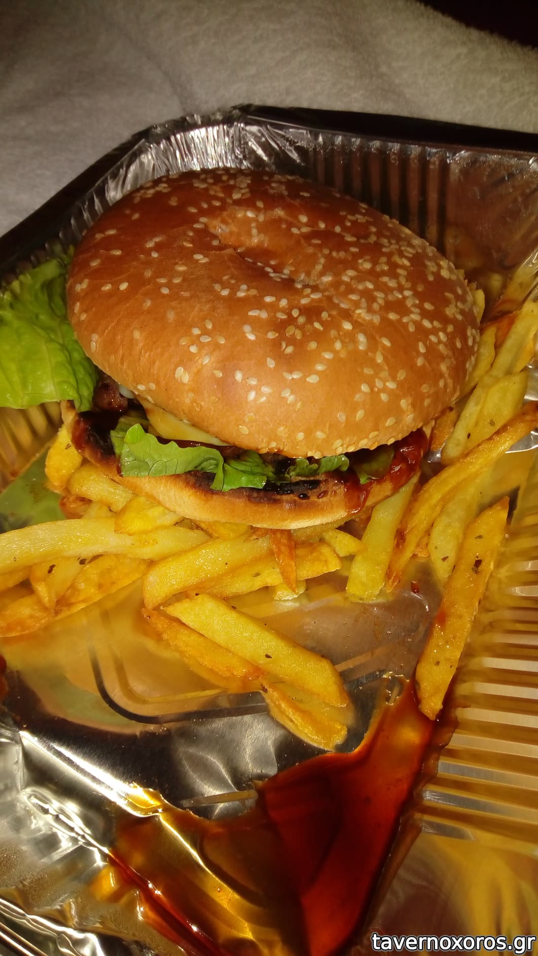 Burger με βουβαλίσιο μπιφτέκι (το μπιφτέκι καλό, το ψωμί και η γέμιση χωρούσε βελτίωση)
