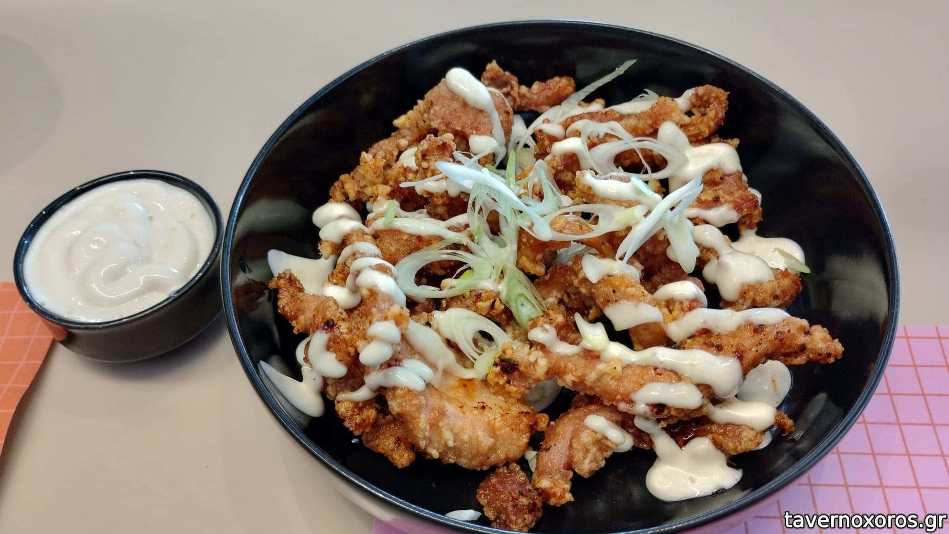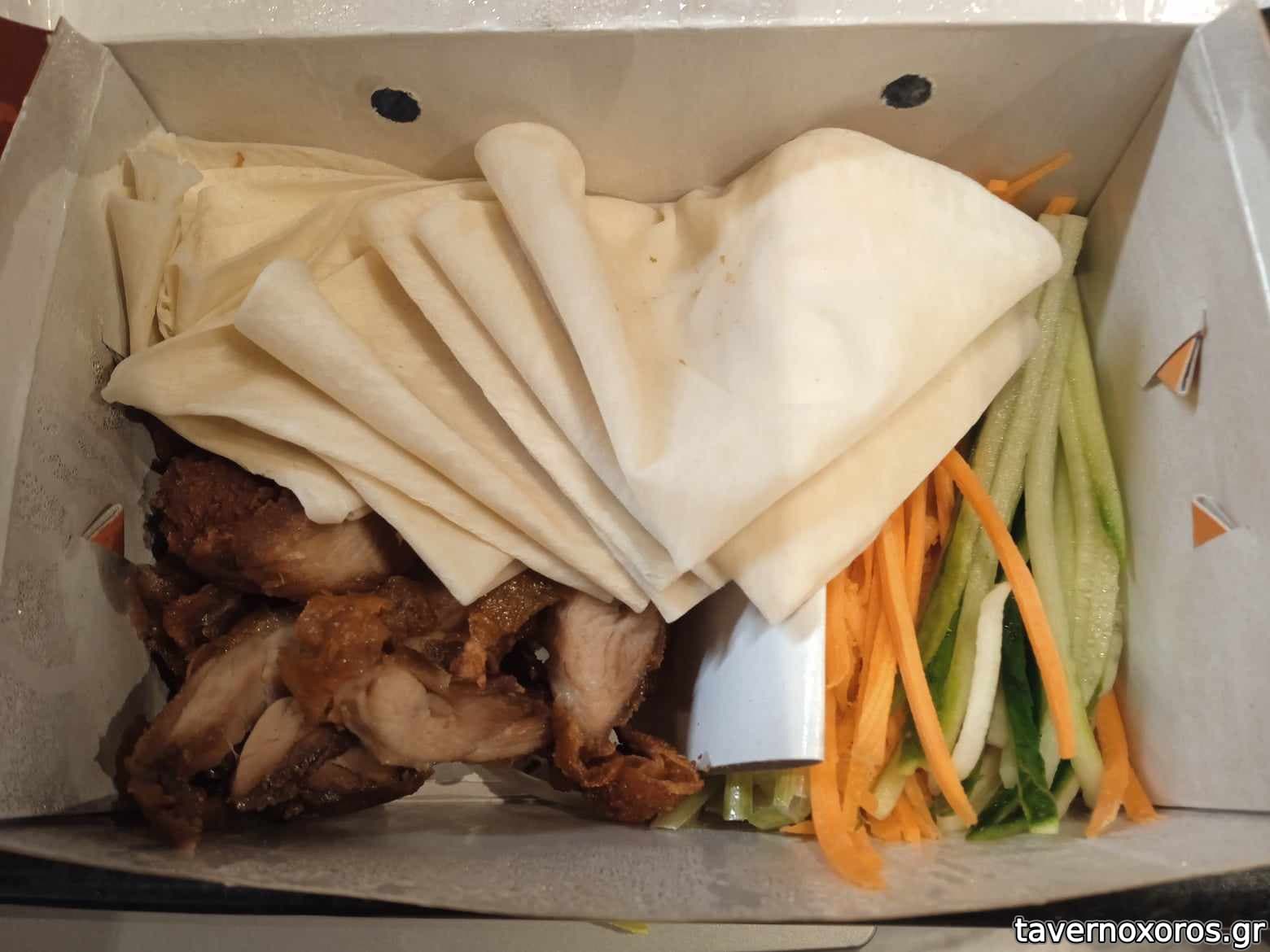 Bang Bang chicken, νέο πιάτο (μπούτι κοτόπουλο λωρίδες πανέ, με έντονο λάιμ και λίγη μαγιονέζα. Μάς άρεσε)
