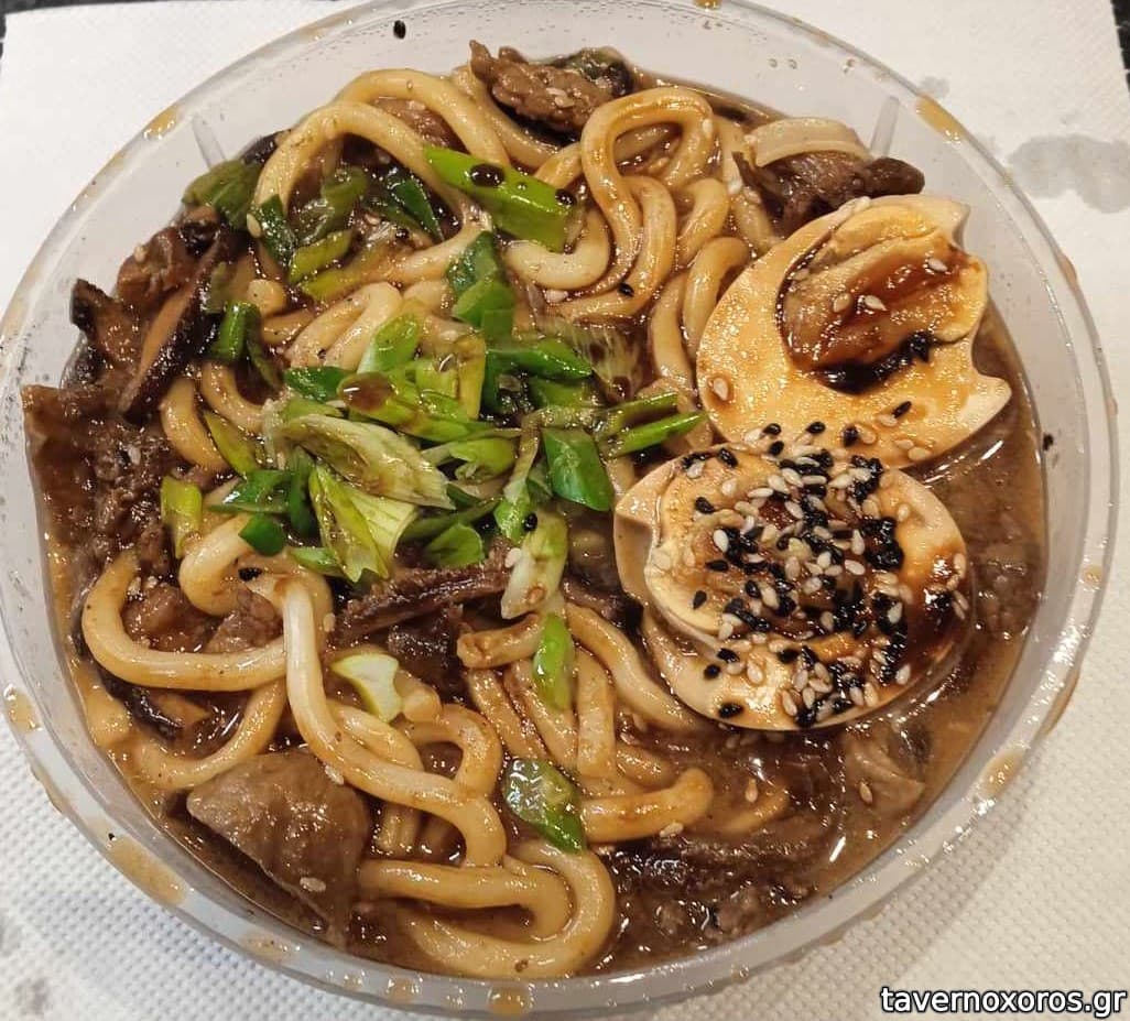 Σούπα με Udon και μοσχάρι bulgogi (9,10 €)