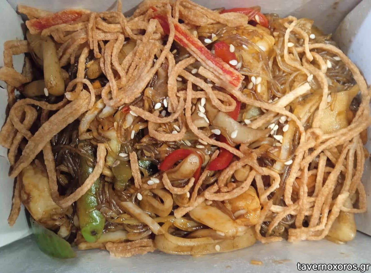 Sweet and sour noodles & Hong Kong noodles με θαλασσινά