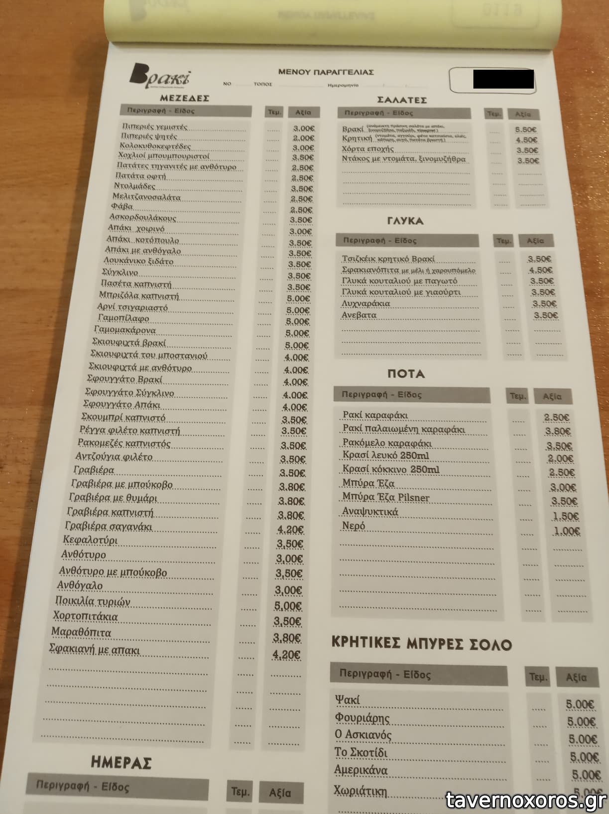 Κατάλογος μεγάλος με κρητικούς μεζέδες.