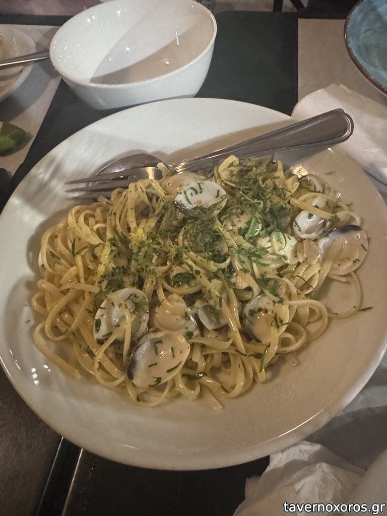 Λιγκουίνι με αχιβάδες (άγευστο, κυριαρχούσε το σκόρδο και το βούτυρο)