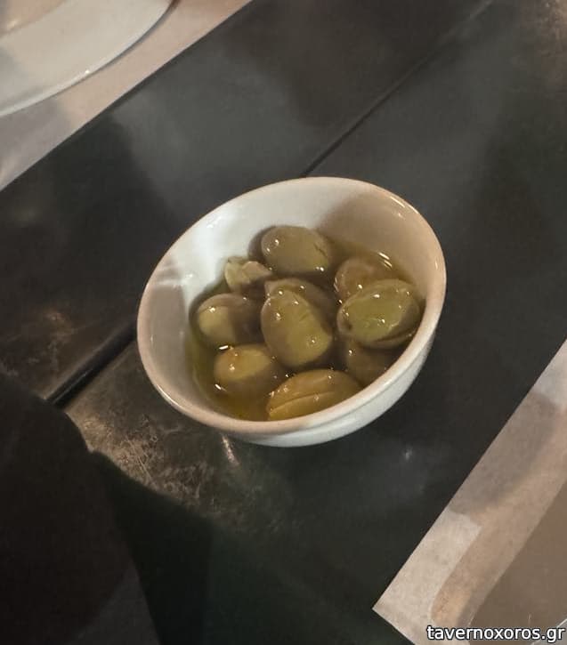 Μαριναρισμένες ελιές (ήρθαν μαζί με το ψωμί, αδιάφορες)