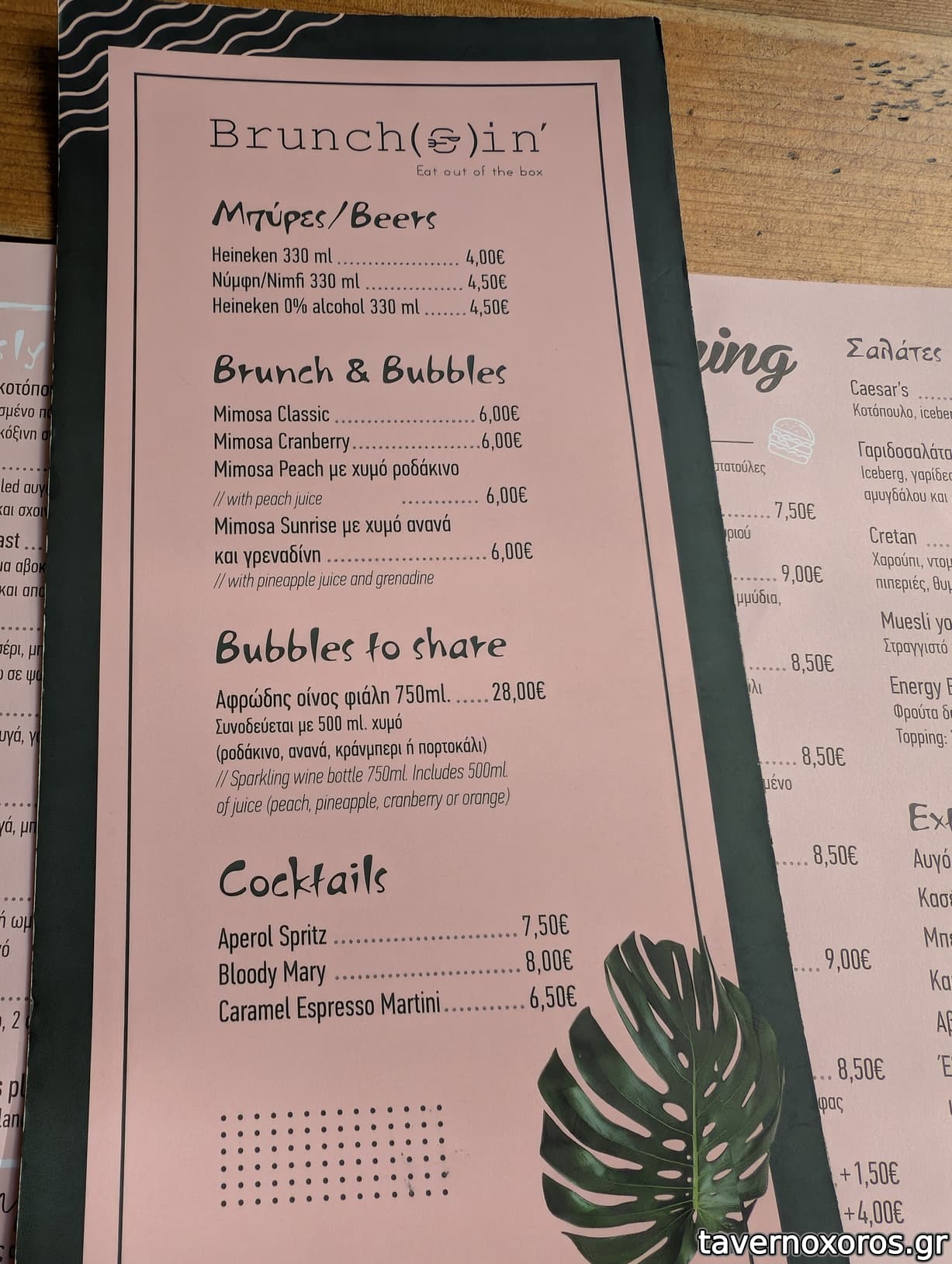 | Λέξεις κλειδιά | Brunchsin, #brunch, #comfort food, #vegan-friendly, #cocktails, #burgers, #πίτσα, #αυγά, #ομελέτα, #bagels, #σαλάτες, #σύγλινο, #κρέπες, #αυγόφετες, #παιδικό μενού |