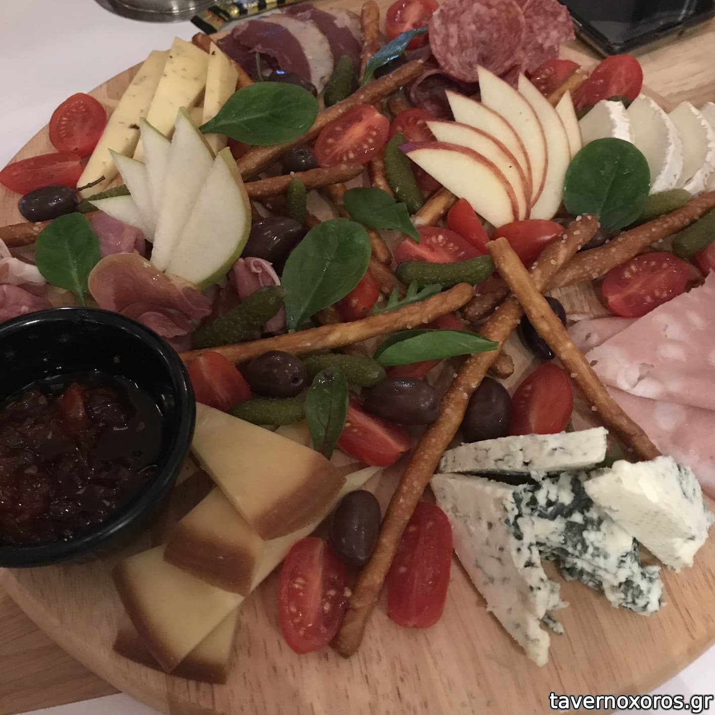 Πλατό τυριών αλλαντικών με μπλε, γκούντα με πέστο ρόσο, μπρι, μπρεζάολα, σαλάμι, προσούτο, μορταδέλα, chèvre, μαρμελάδα ντομάτα δική τους