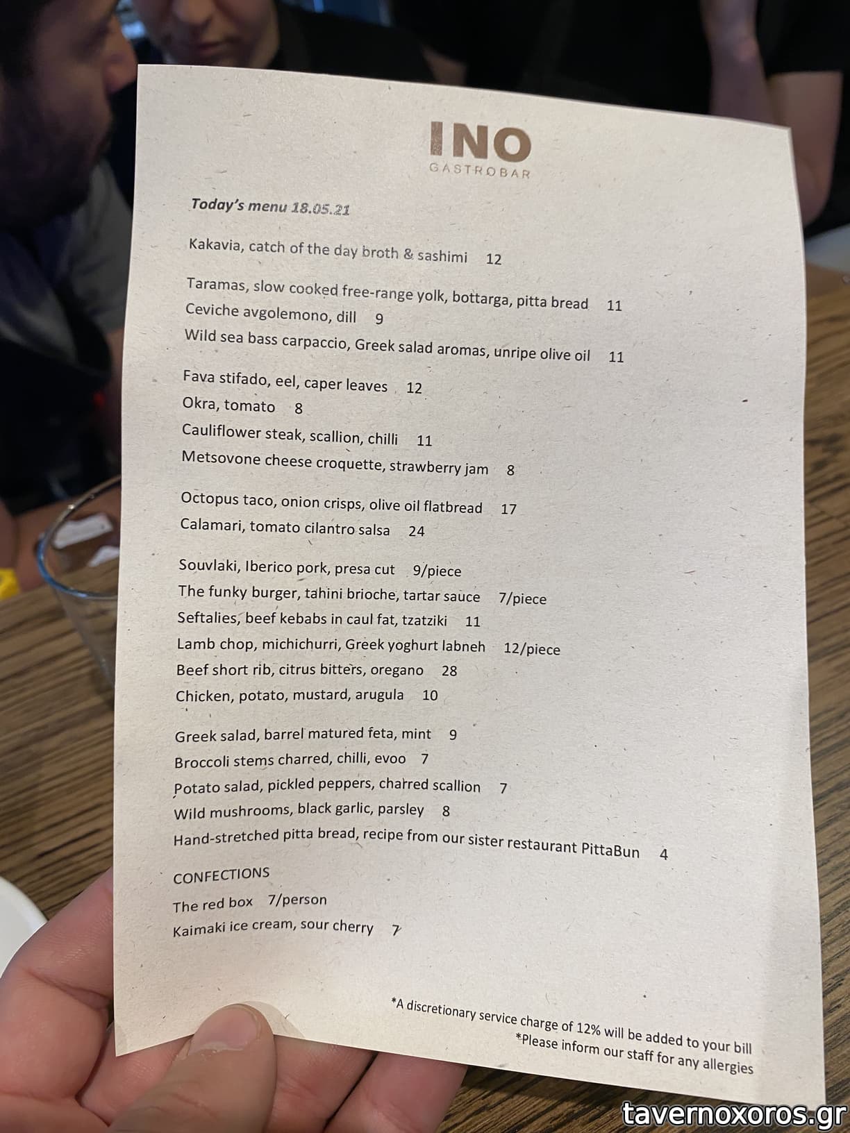 Τιμες: υπερβολικά / αστεία ακριβό ( παράδειγμα , δύο μπουκιές σεφταλίες 13ευρώ , ή τακος χταπόδι 20 ευρώ το ένα ) πιστεύω πώς εάν δεν τις ρίξουν , they will go out of business αφού με τα ίδια λεφτά, μπορώ να φάω σχεδόν οπουδήποτε και καλύτερα στο Λονδίνο.
