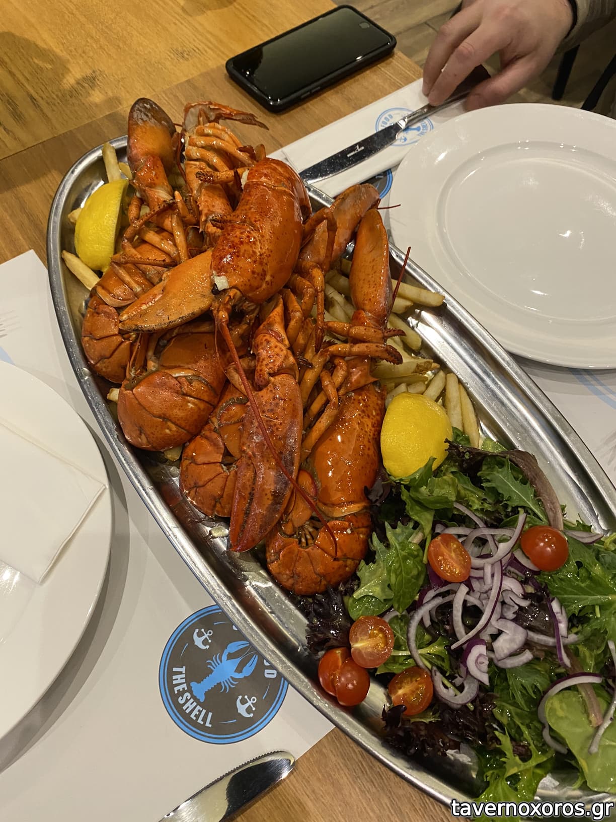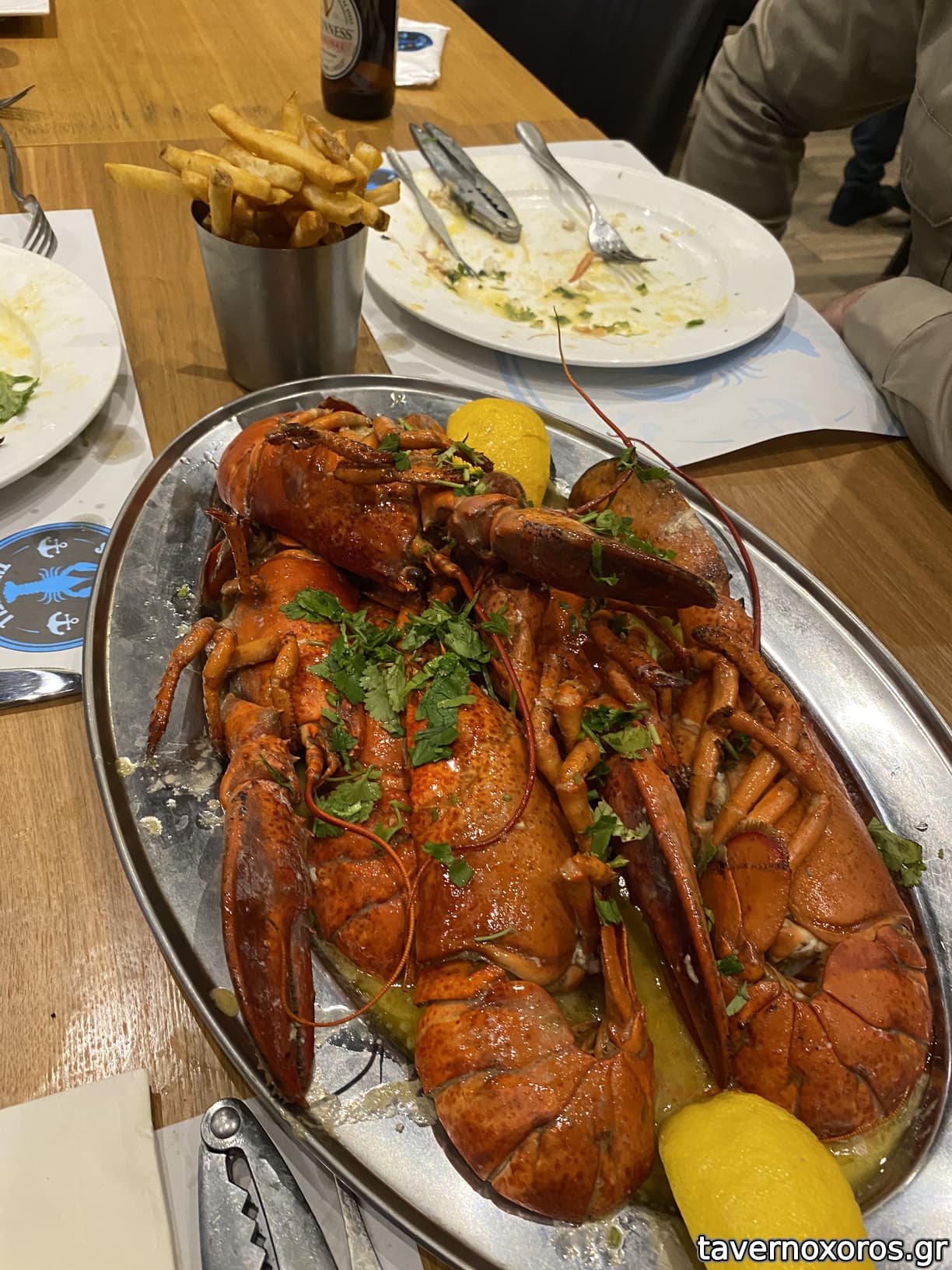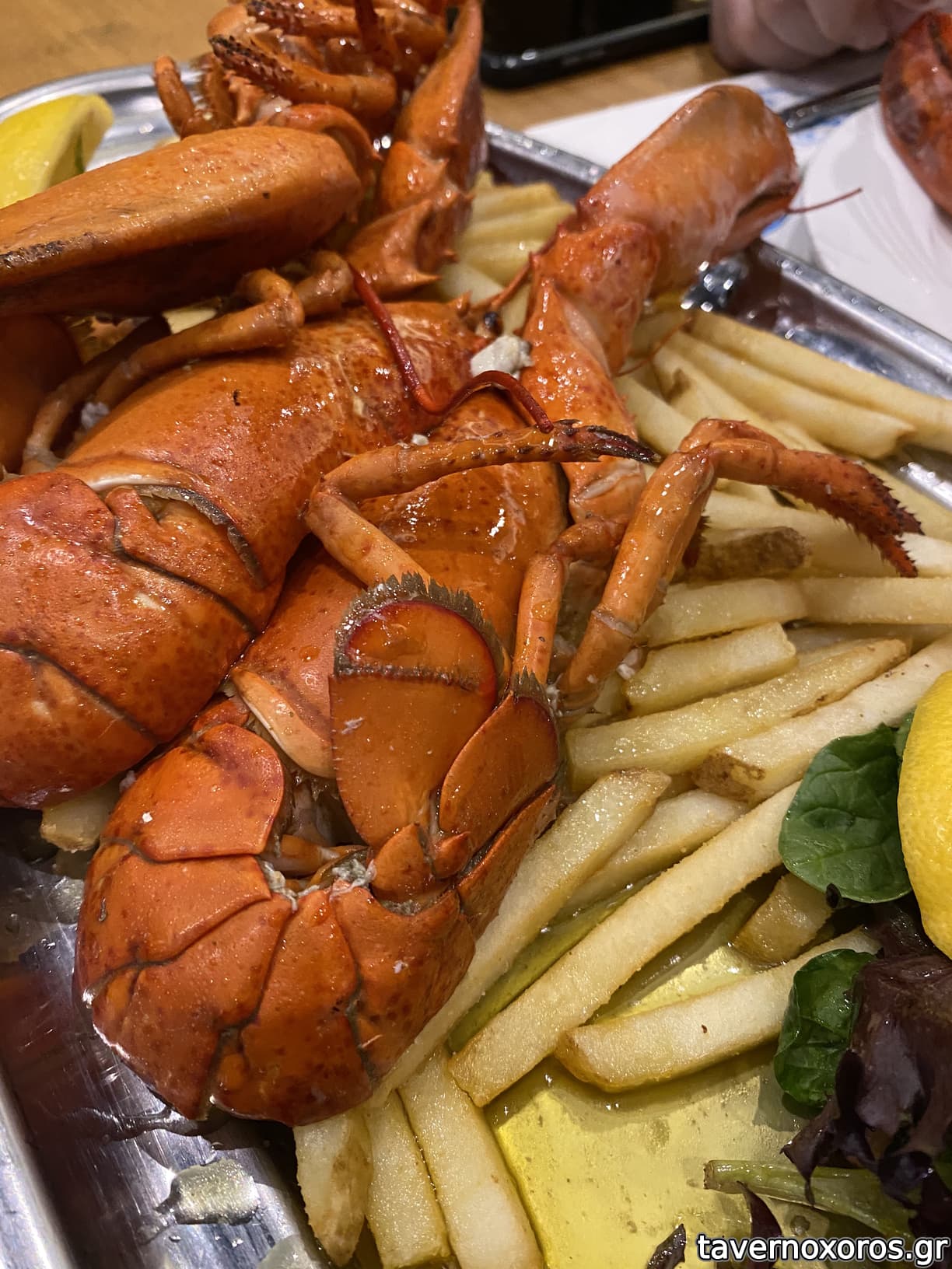 5 ώρα. Και όντως ήταν έτσι, σκάσαμε στον αστακό που ερχόταν με ζεστό σκορδοβούτυρο και ωραίες τραγανές πατάτες.