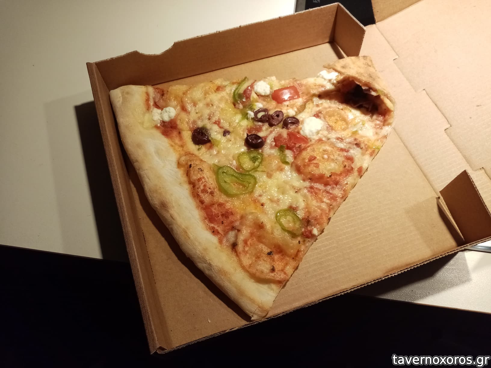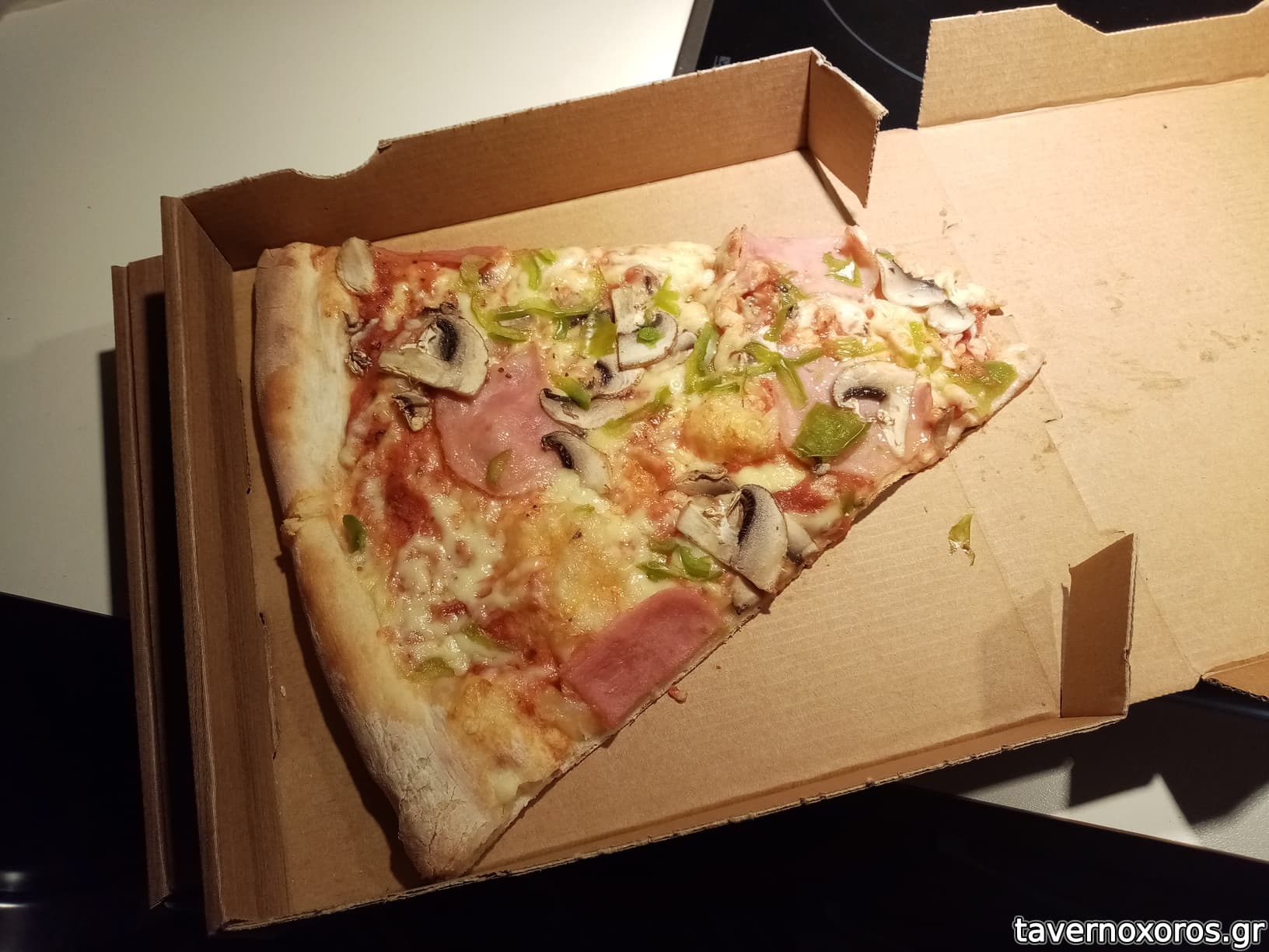 Συμπαθητική πίτσα με λεπτή ελαφριά ζύμη και κομμάτια που θυμίζουν τα φοιτητικά του κέντρου με 1,5 €. Είχε αρκετές διαφορετικές πίτσες στην τζαμαρία αλλά η κοπέλα στο σέρβις δεν ήταν αρκετά πρόθυμη να μας εξηγήσει τι είχε η κάθε μια. Έπρεπε να ρωτάμε για την κάθε μια ξεχωριστά δείχνοντας με το δάχτυλο. Στα αρνητικά επίσης του μαγαζιού είναι ότι όλοι είχαν την μάσκα στο πηγούνι.