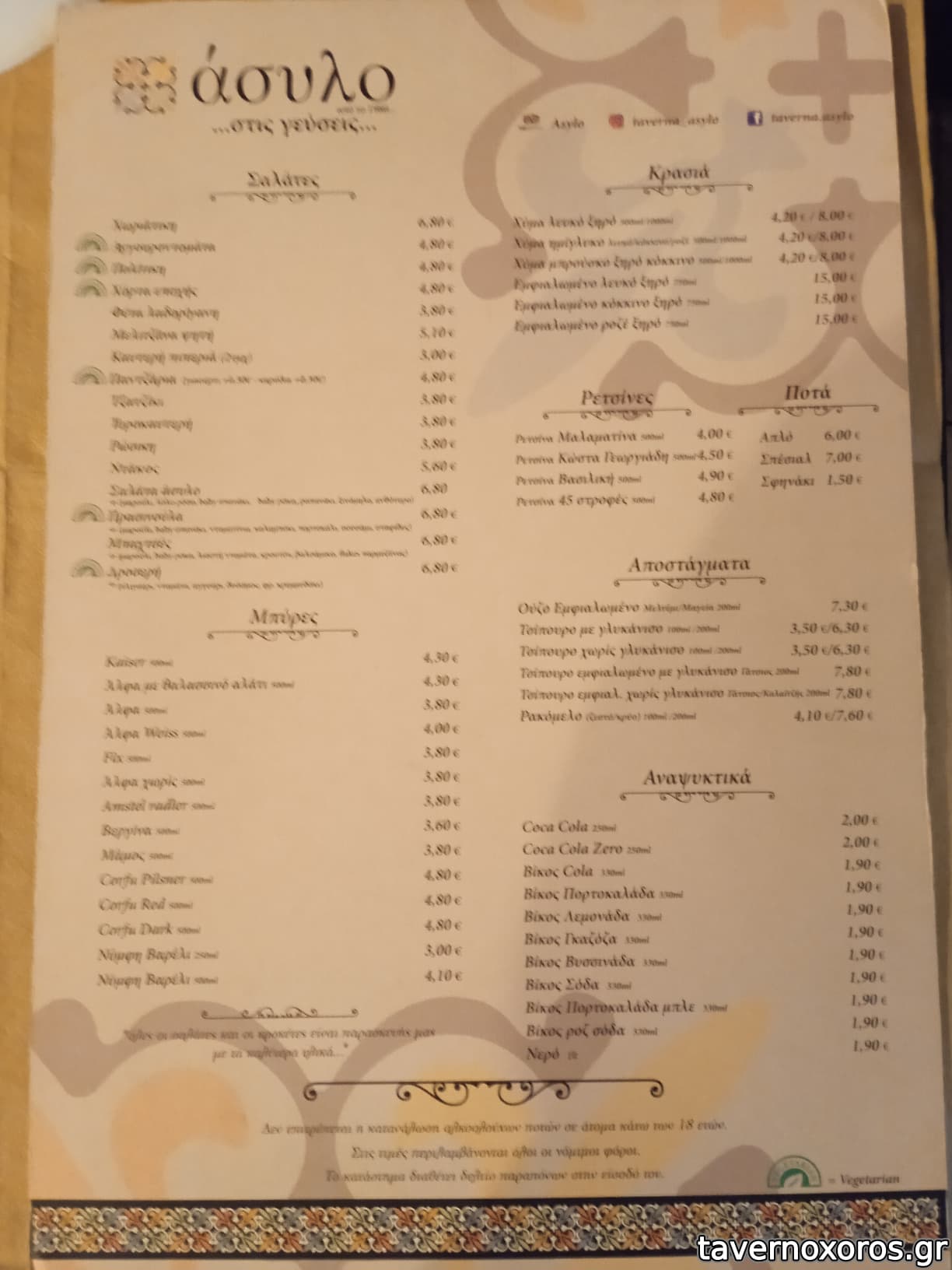Να σημειώσω πως στο Άσυλο πηγαίναμε για την αυλή του και τις τιμές του, αλλά και πως το φαγητό ήταν μέτριο. Όμως έχουν αλλάξει πολύ όπως και εμείς. Ως προς τις τιμές, 20 Ευρώ το άτομο (κομπλεντάν).