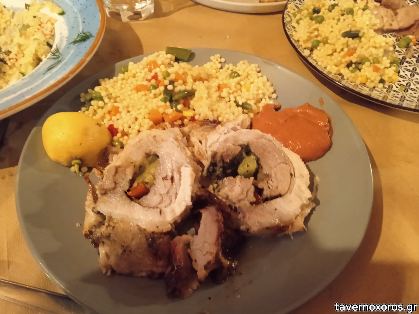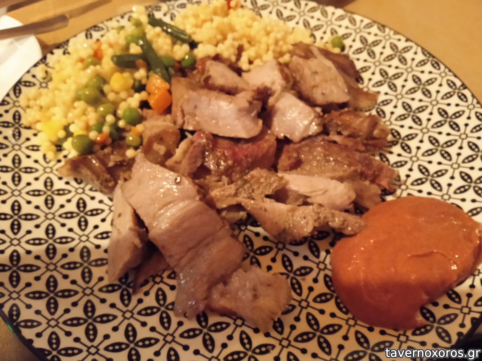 - σουβλα χοιρινο εξοχικο πολυ καλο (κρεας σουβλας που περναει μια γυρα απο φουρνο μαζι με πιπεριες και μελωνει μεσα σε σαλτσα. ειμαι επιφυλακτικη οταν η βαση τους ειναι η μουσταρδα αλλα εδω ηταν ισορροπημενη)