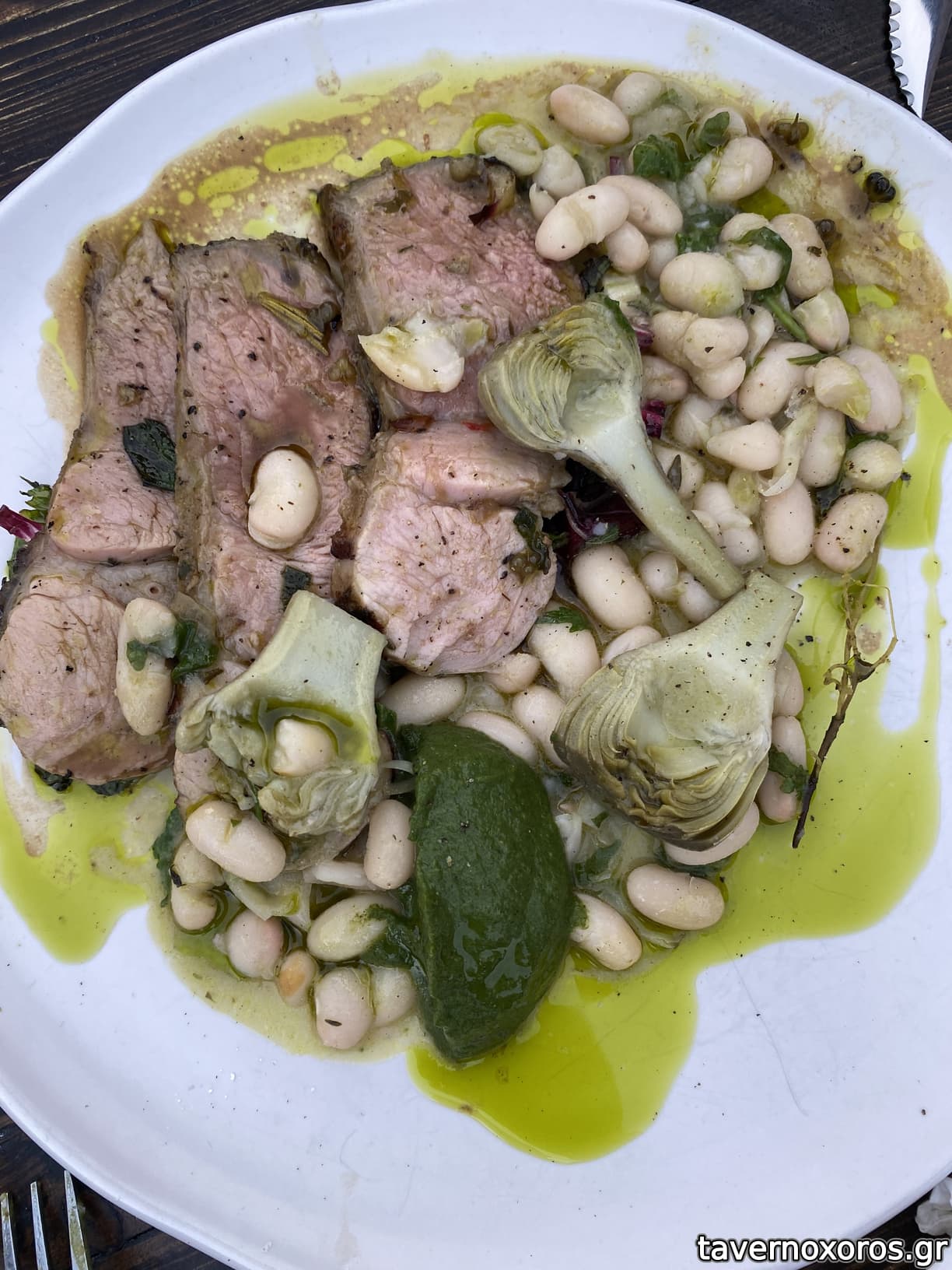Αρνί, με αγγινάρες και φασόλια (καλό)