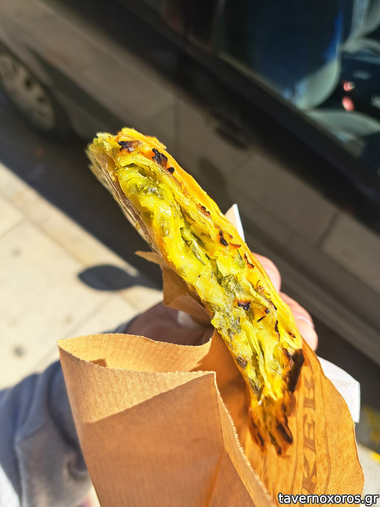 Η γέμιση πολύ καλή. Πλούσια, χωρίς τυρί, κάθε μπουκιά είχε γεύση πράσου.
