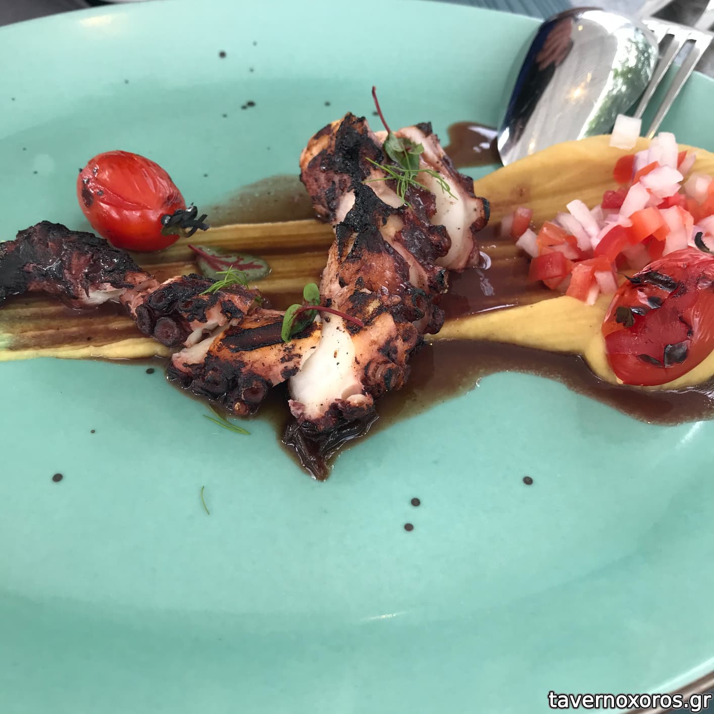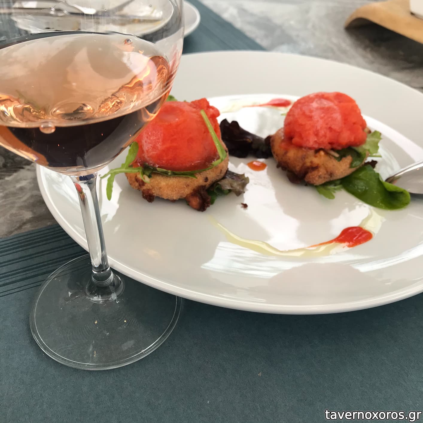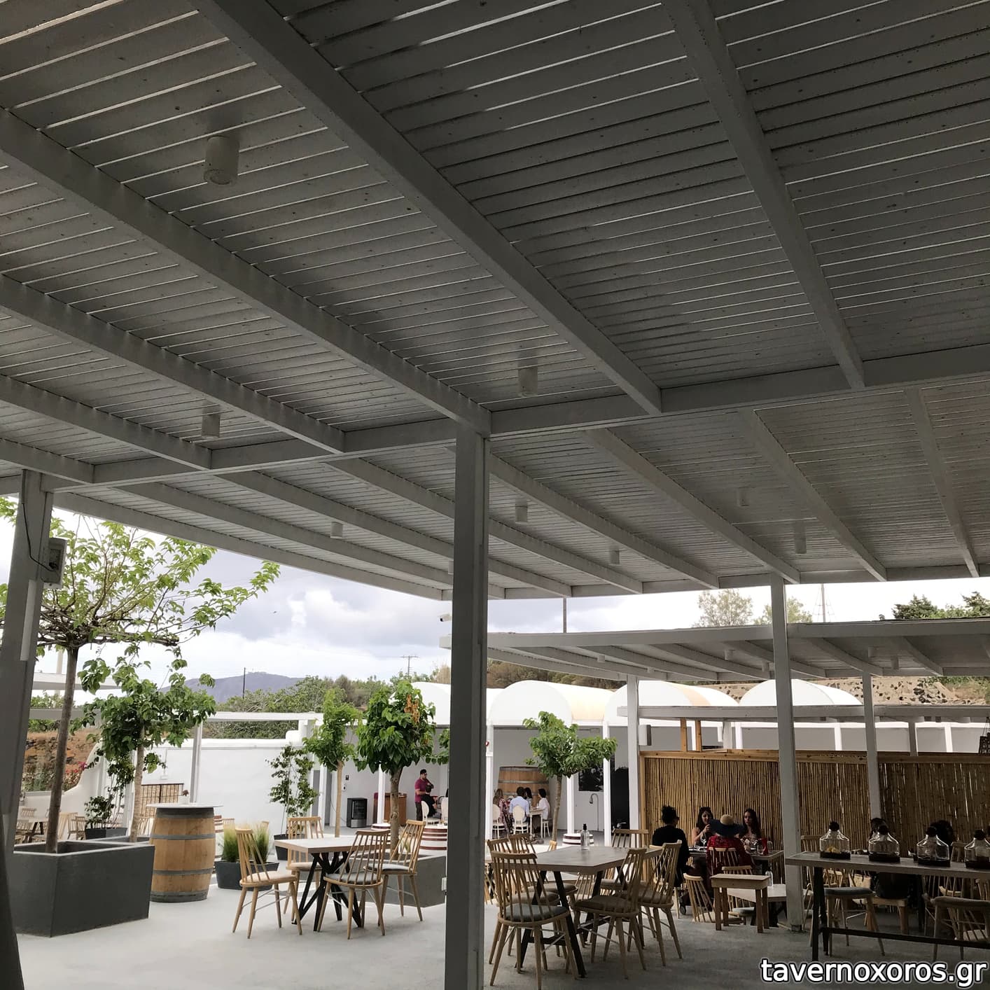 Το εστιατόριο βρίσκεται μέσα στον χώρο του Οινοποιείου Anhydrous (το οινοποιείο της Σαντορίνης του Α. Μούντριχα από το Αβαντίς στην Εύβοια), προσφέρει τα συνοδευτικά της γευστικής δοκιμής κρασιού, αλλά προσφέρει και αυτόνομο μενού. Σεφ ο Γιάννης Μπαξεβάνης (όταν επισκεφθήκαμε ήταν εκεί).
