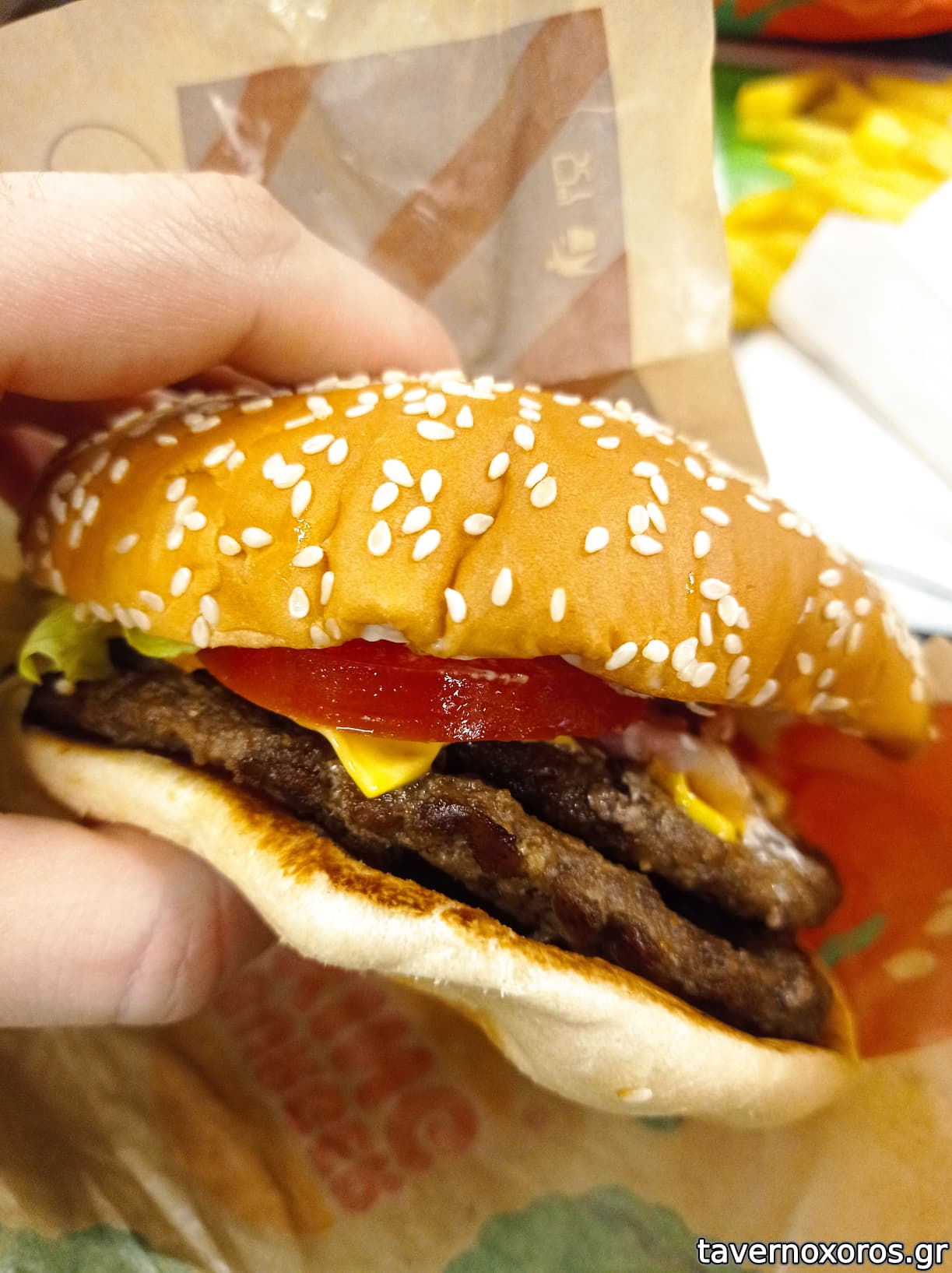Δοκίμασα ένα whopper κι ένα απλό burger με κοτομπουκιές.
