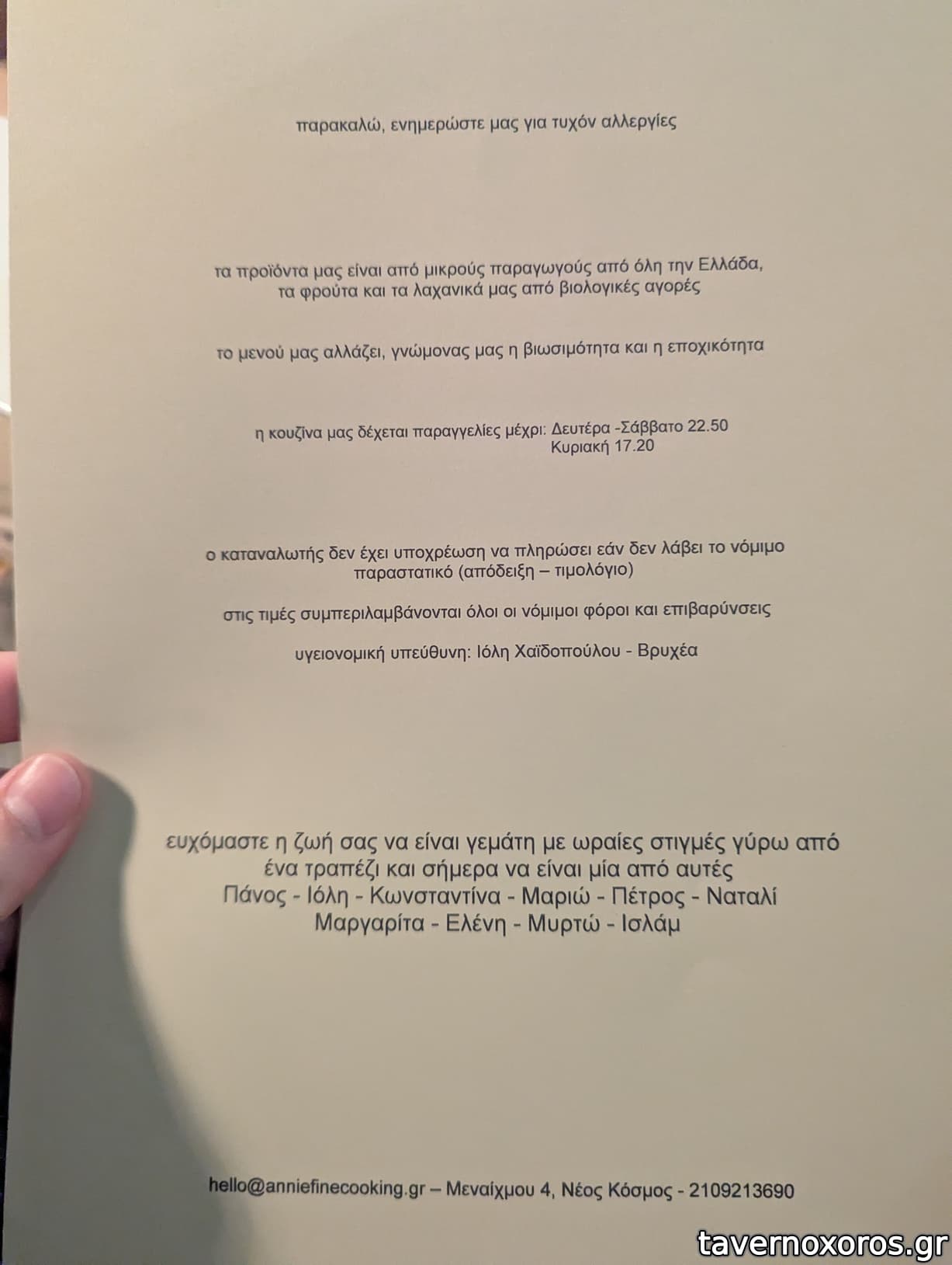 Συνολικά στα 104 ευρώ, αρκετά με δεδομένο ότι είχαμε 1 κυρίως. Και το παράδοξο είναι ότι: παρόλο που δεν μ αρεσε το ορεκτικό (δεν το έφαγα σχεδον καθολου), το κυρίως ήταν ΟΚ, το τυρι καλό αλλά επίσης δεν το έφαγα, ωστόσο το εστιατόριο βγάζει ένα ευχάριστο θετικό vibe, ο κατάλογος που αλλάζει δημιουργεί προσμονή, είναι πολύ ενδιαφέρουσα η προσέγγιση με τα βιο λαχανικά, οι πρώτες ύλες καλές, είμαι λοιπόν σίγουρη ότι θα ξαναέρθω να δοκιμάσω κι άλλα πράγματα. ΥΓ- στα διπλανά τραπέζια πέρασαν κάτι καραβίδες πολύ promising.